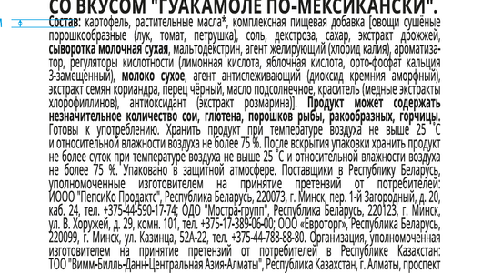 Картофельные чипсы Lay's Гуакамоле по-мексикански 125г интересное: