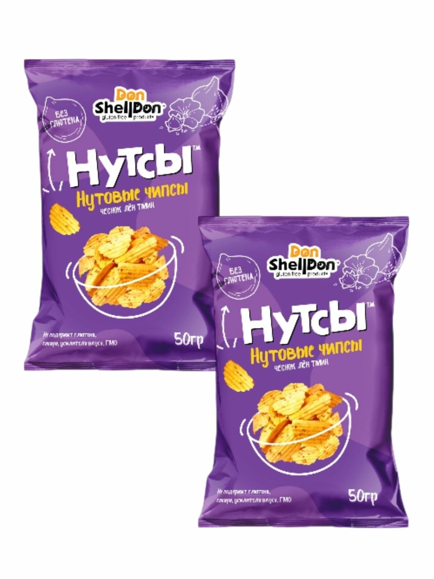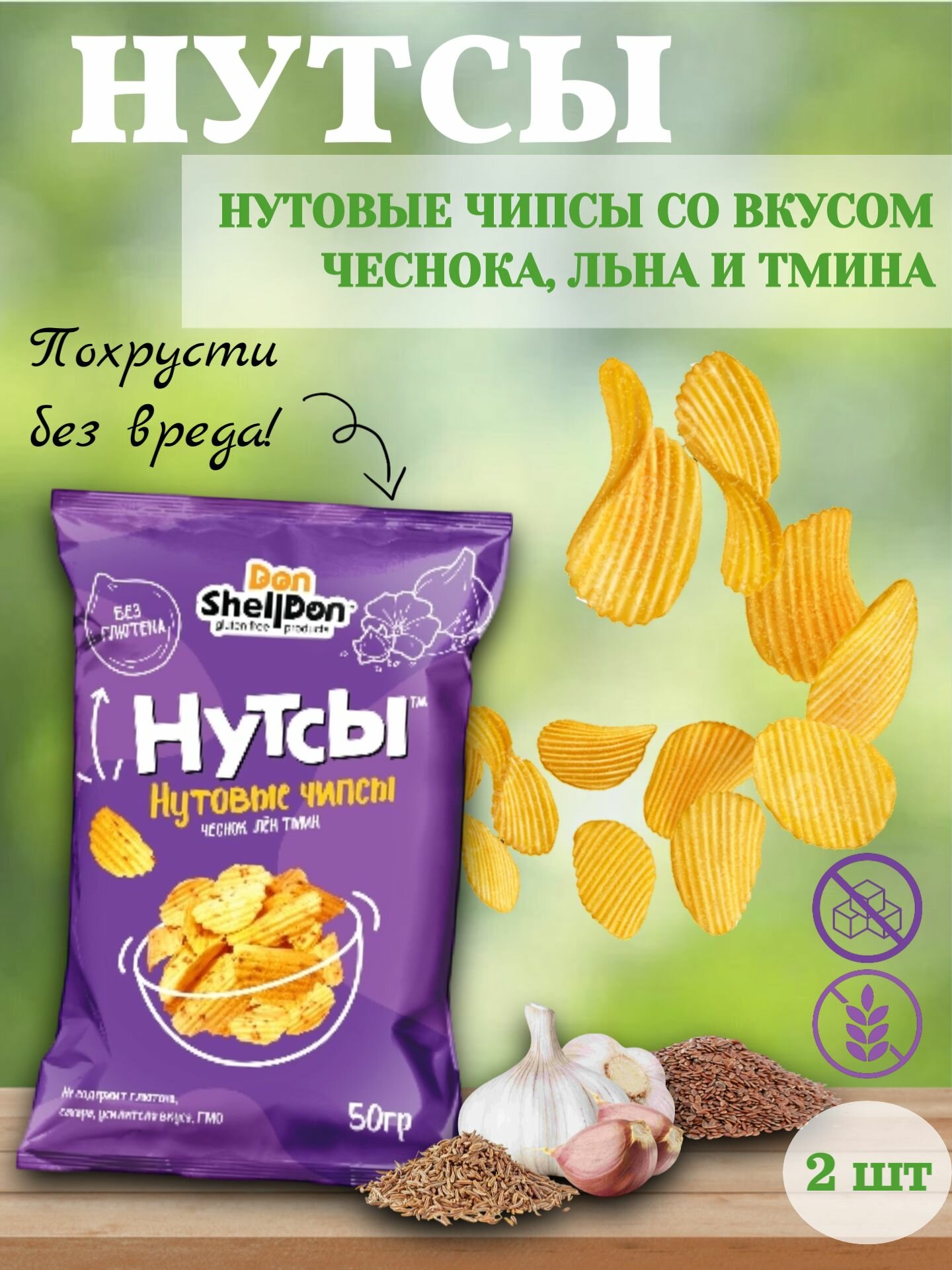 Купить Чипсы нутовые б/глютена "Нутсы" чеснок, лен, тмин, 50 гр (2 шт. в наборе)