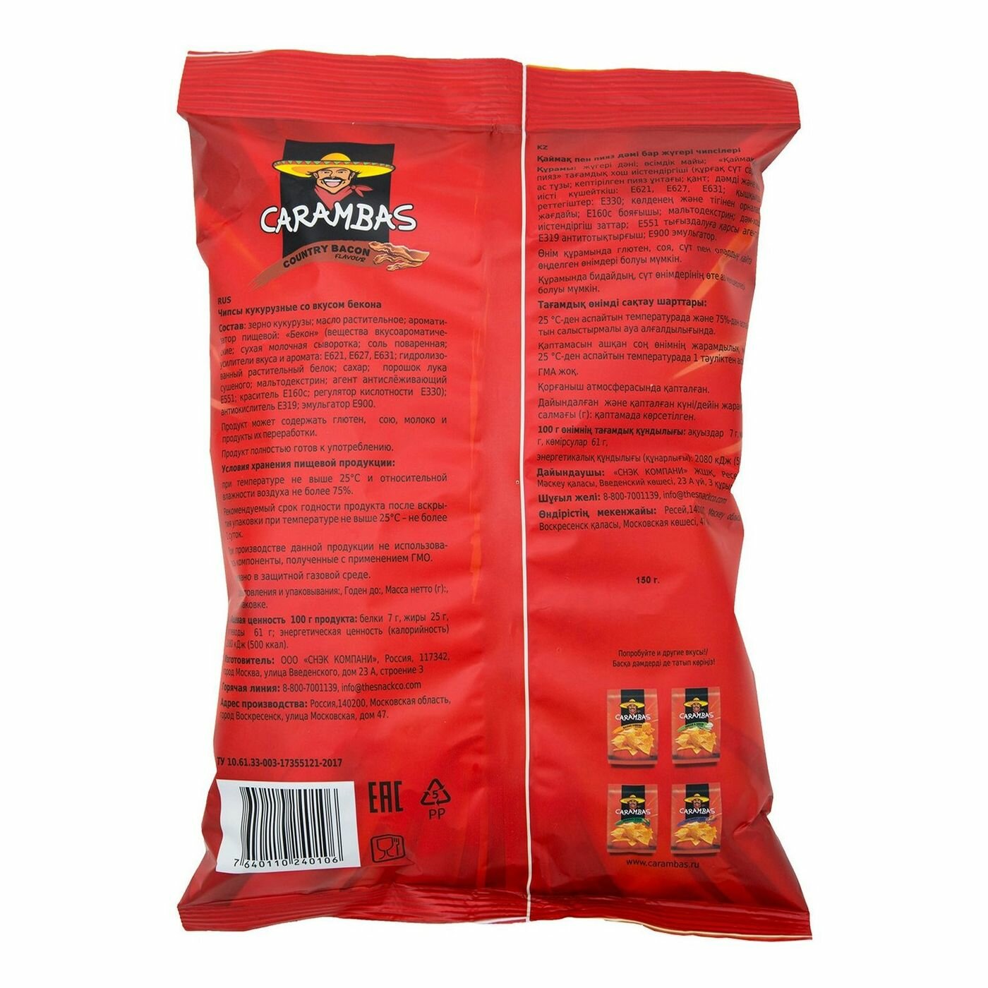 Ниже Вы можете прочитать отзывы на Чипсы CARAMBAS кукурузные со вкусом бекона 150г, ознакомится с подробными характеристиками, посмотреть интересные обзоры и фотографии на Чипсы CARAMBAS кукурузные со вкусом бекона 150г.