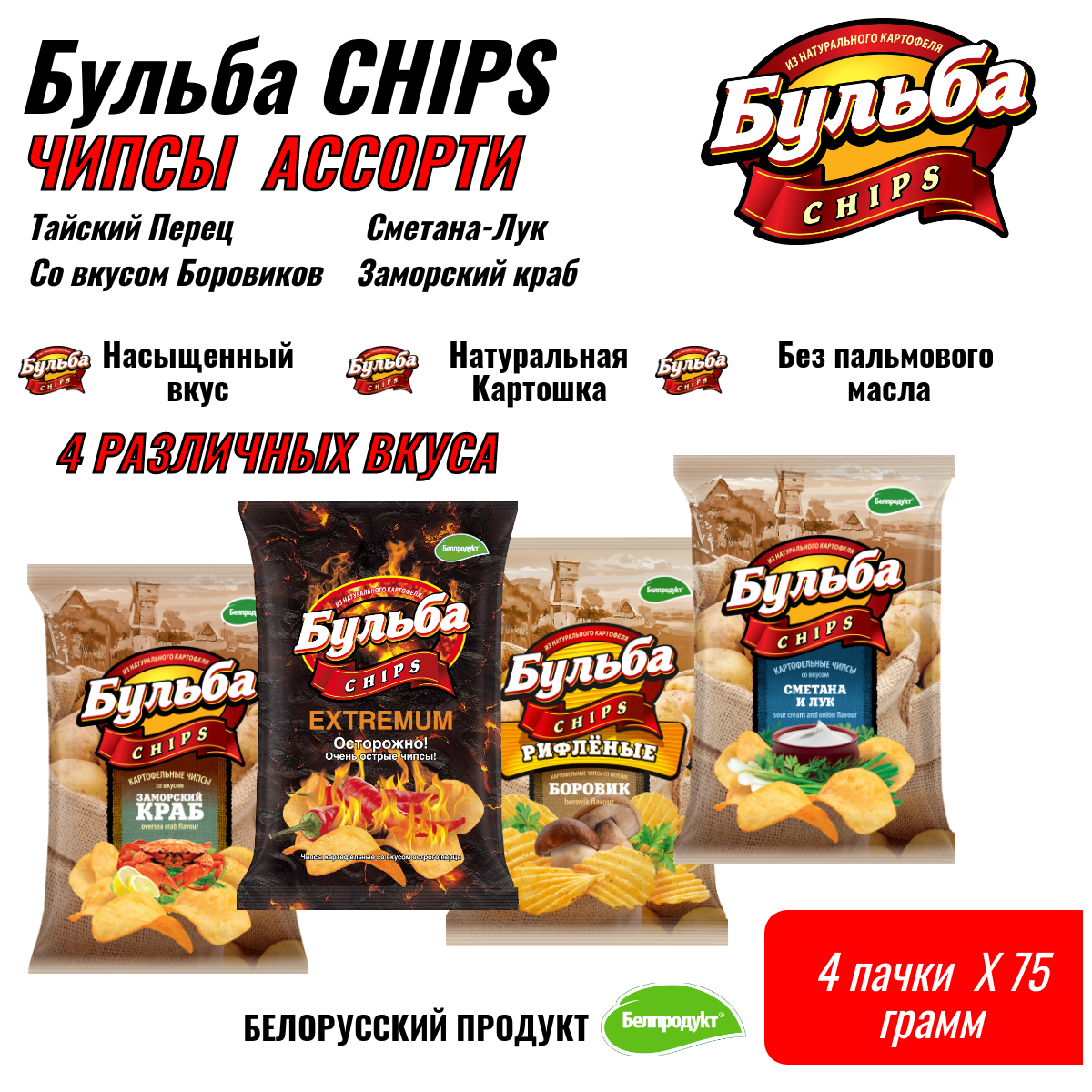 Купить Чипсы Бульба CHIPS ассорти 4 вкуса 4шт по 75 гр.