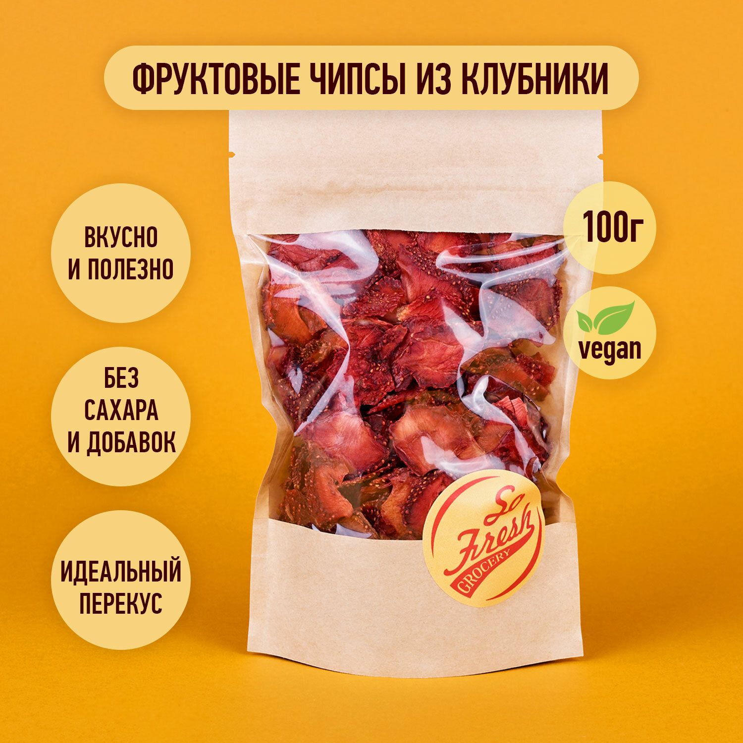 Купить Фруктовые чипсы/ фрипсы/ сухофрукты So Fresh grocery клубника сушеная слайсами без сахара, Иран, 100 г.