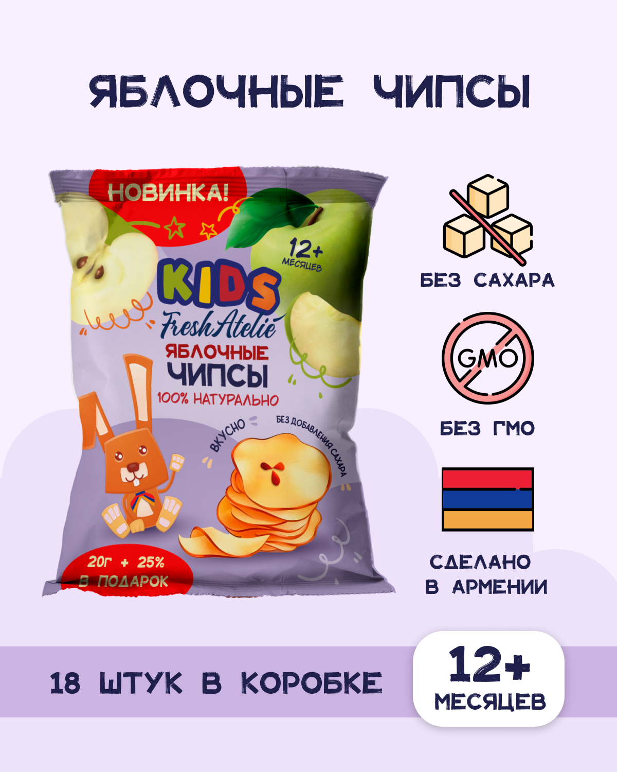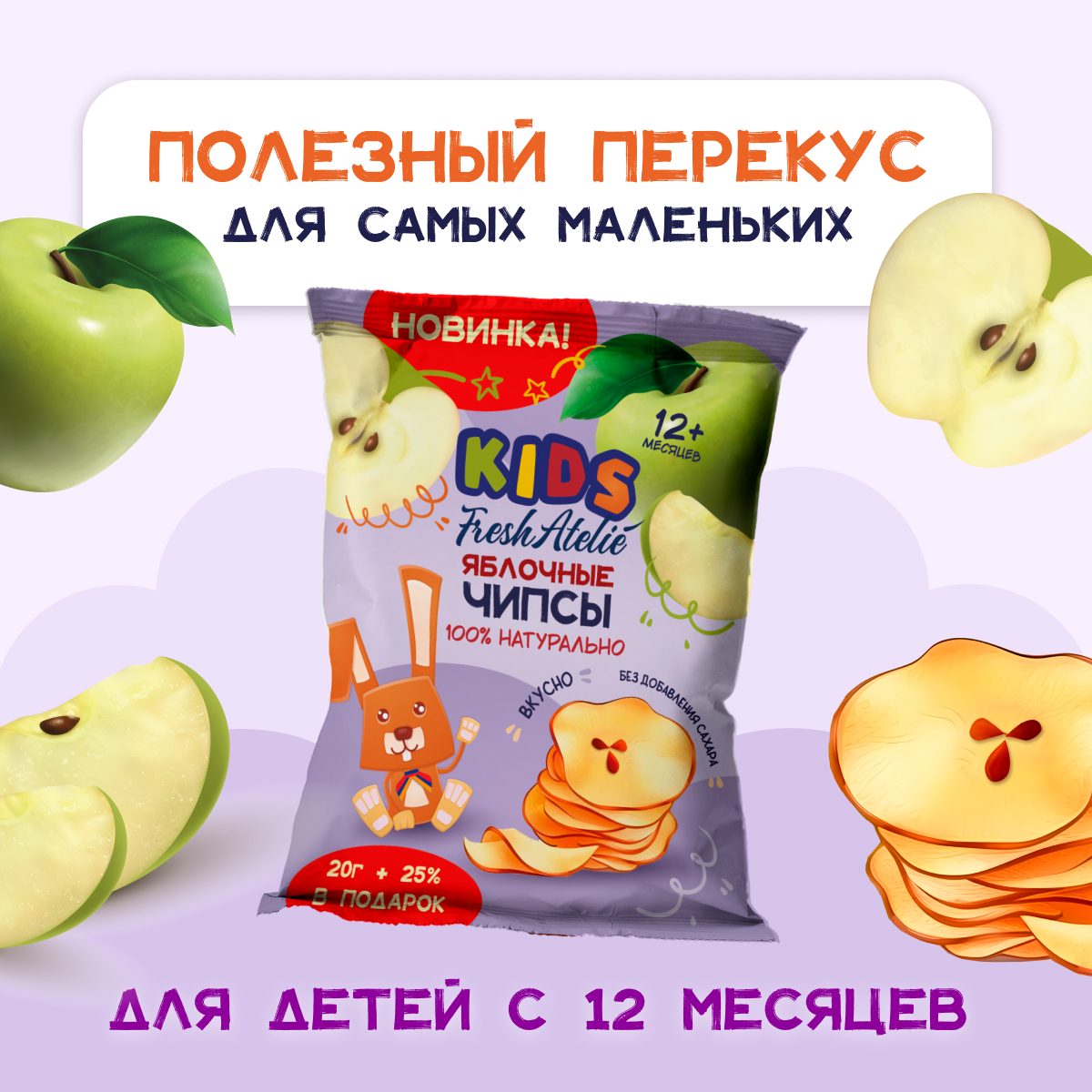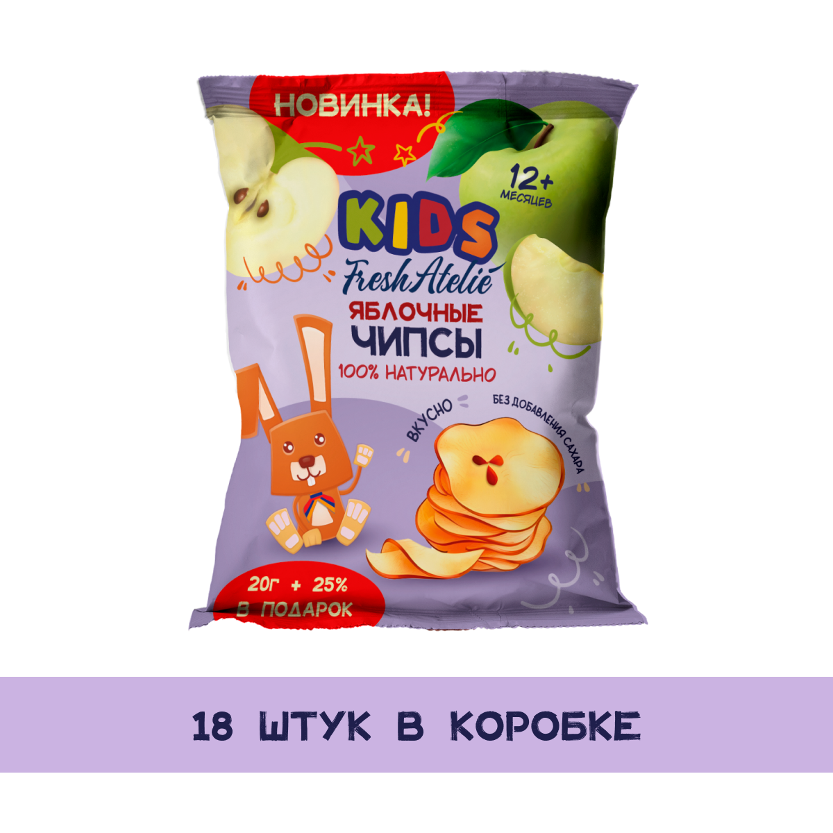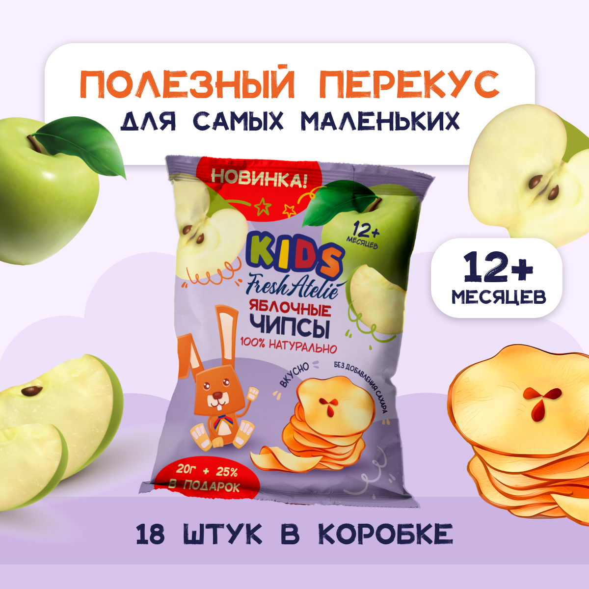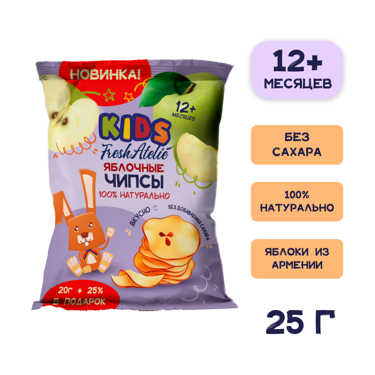 Купить FRESH ATELIE - чипсы яблочные + 25% в подарок с 12 мес, 2 5г, 9 штук