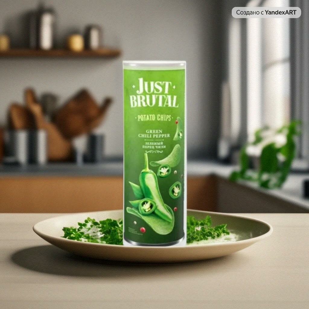 Чипсы картофельные Just Brutal со вкусом зеленого перца чили, 2*100 гр, туба интересное: