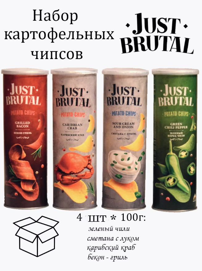 Чипсы картофельные Just Brutal, микс из 4 вкусов, 4*100 гр, туба интересное: