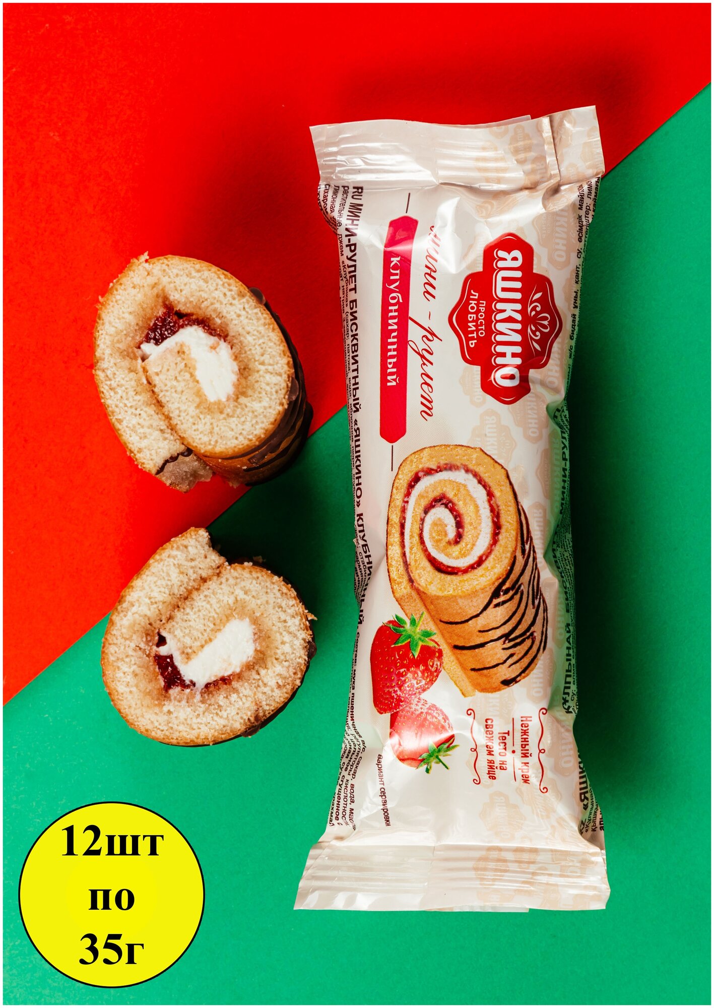 Мини-рулеты Яшкино Клубничный бисквитный, 12 шт по 32 г KDV интересное: