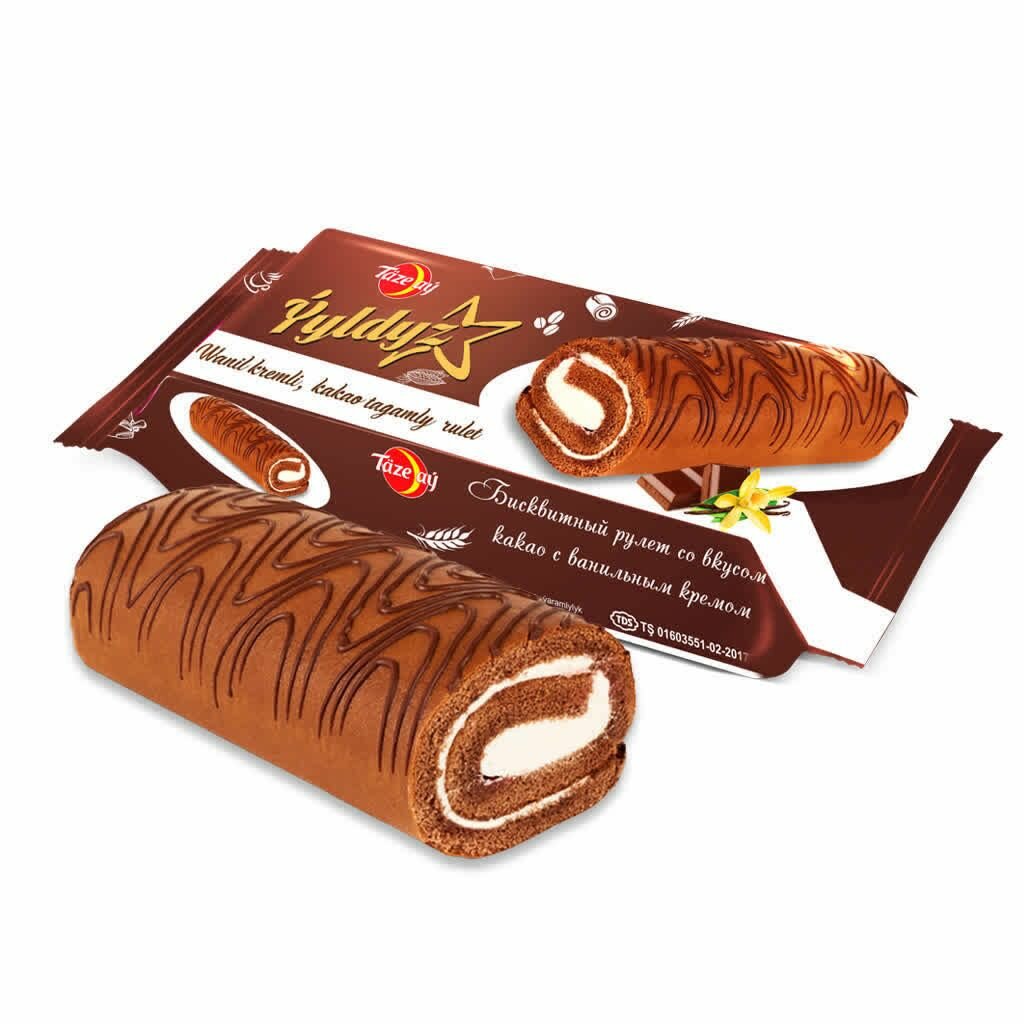 Бисквитный рулет со вкусом какао с ванильным кремом 170гр интересное: