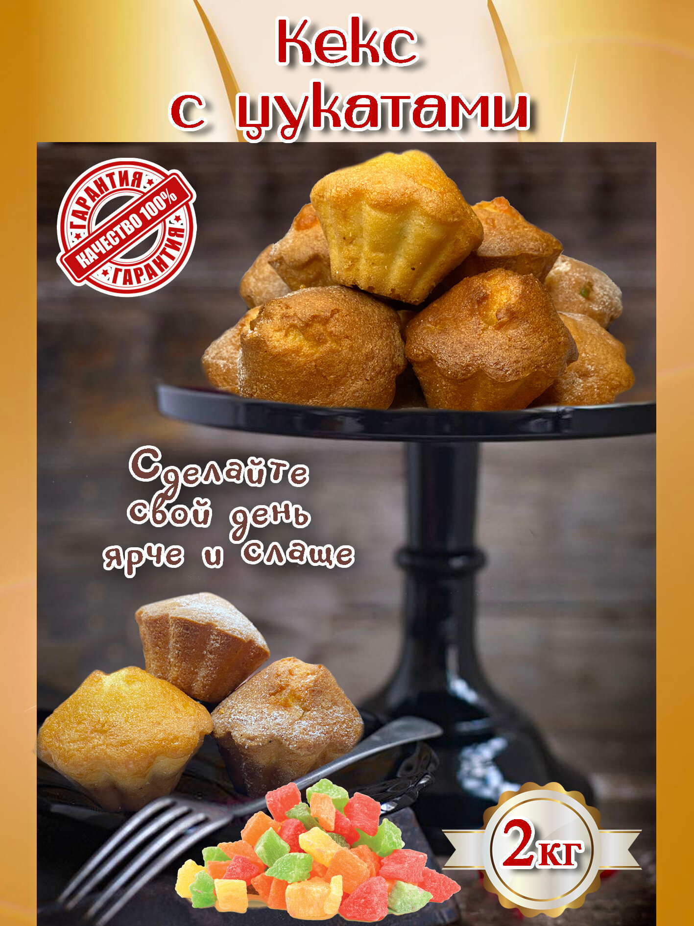 Кексы нежные "С цукатами" коробка 2 кг. эксклюзивное Кубанское производство интересное: