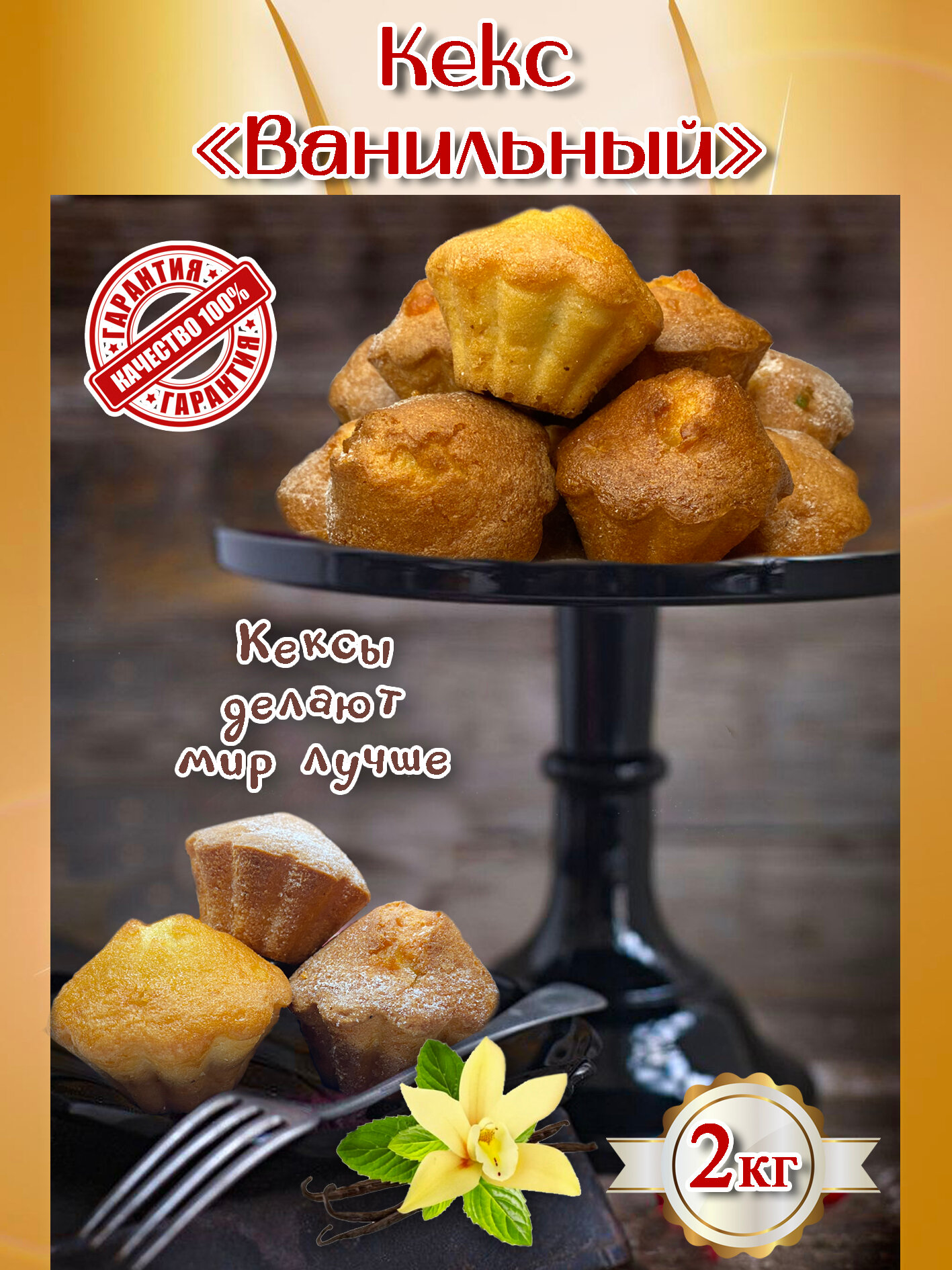 Кексы нежные "Ванильный вкус" коробка 2 кг. эксклюзивное Кубанское производство интересное: