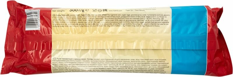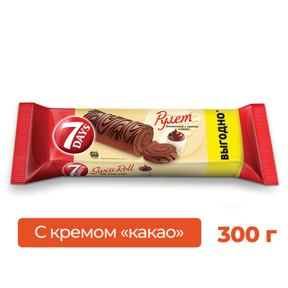 Рулет бисквитный 7Days темный с кремом какао 300г интересное: