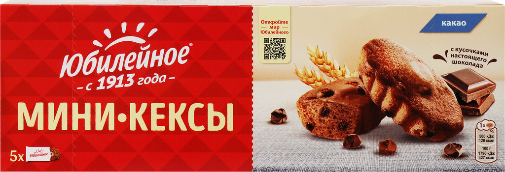 Мини-кексы юбилейное с кусочками темного шоколада и с какао, 140г интересное:
