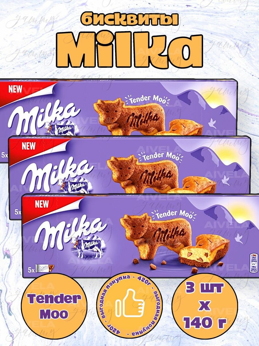 Бисквит Милка Тендер Кау / пирожные Milka Tender Cow (Tender Moo) 3 коробки х 140г интересное: