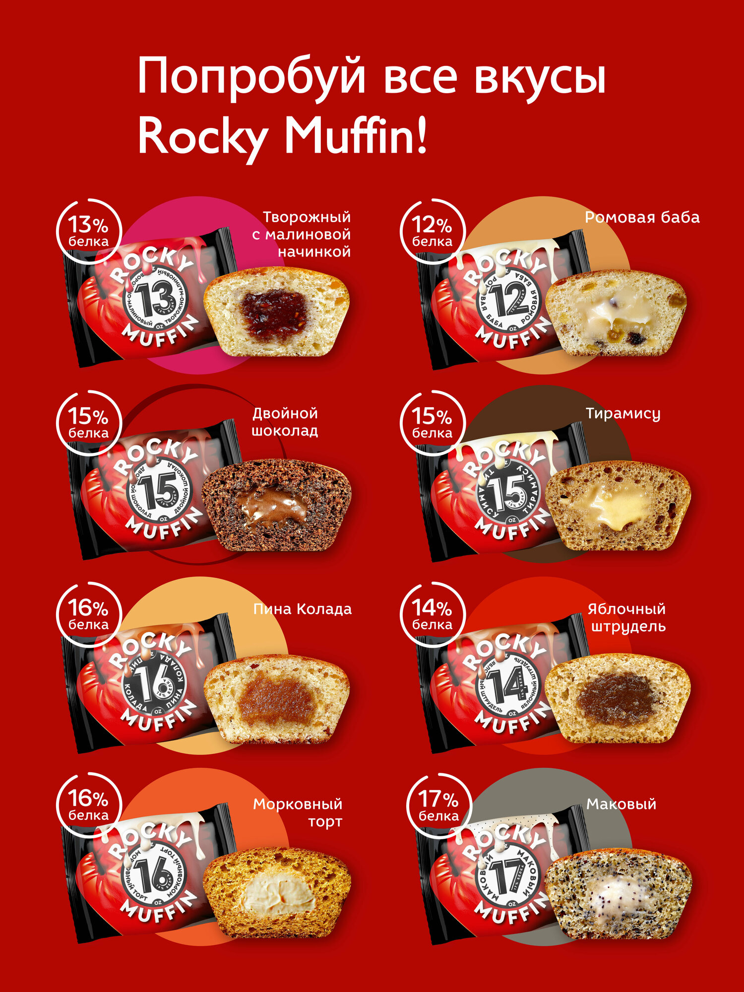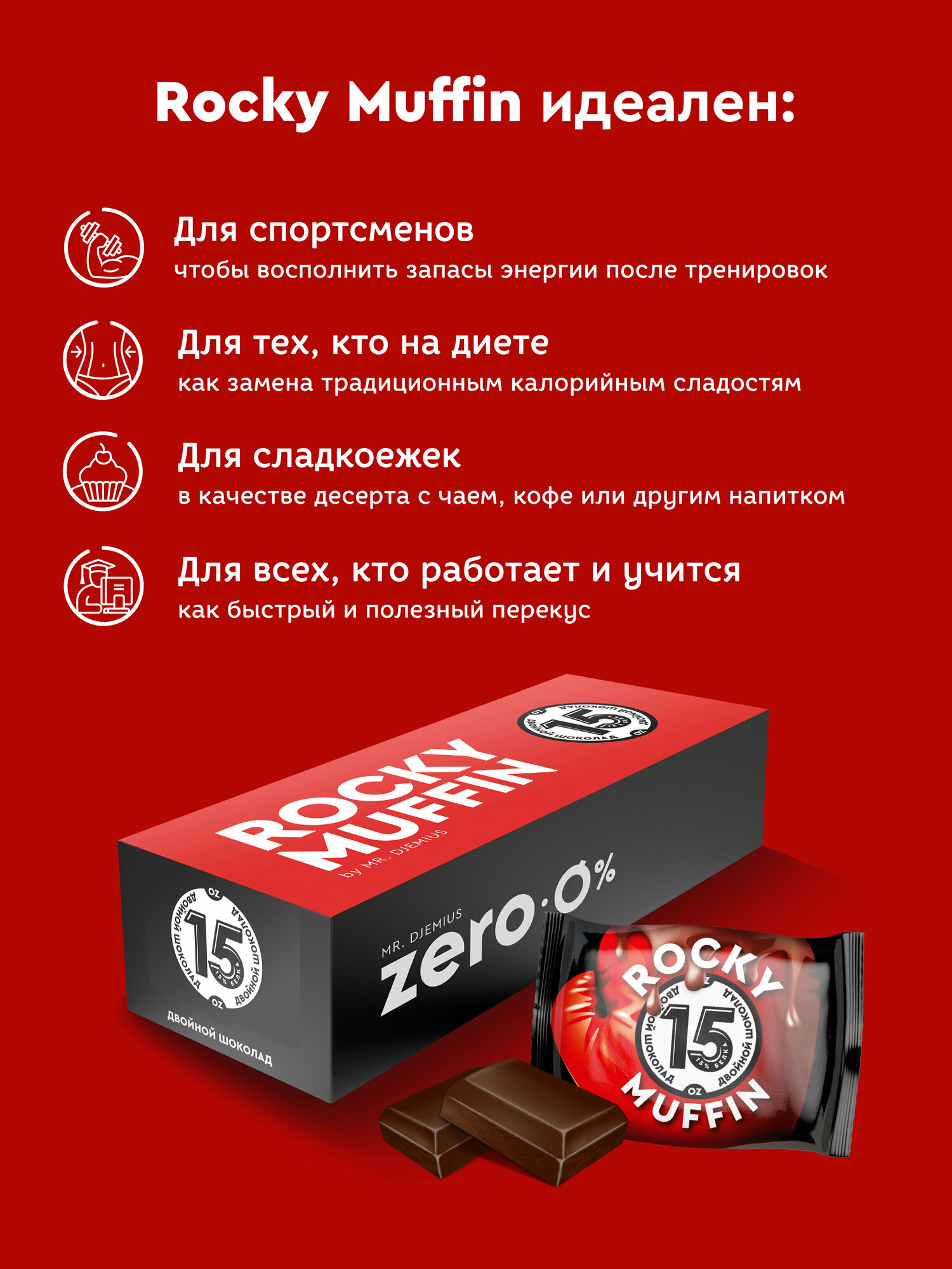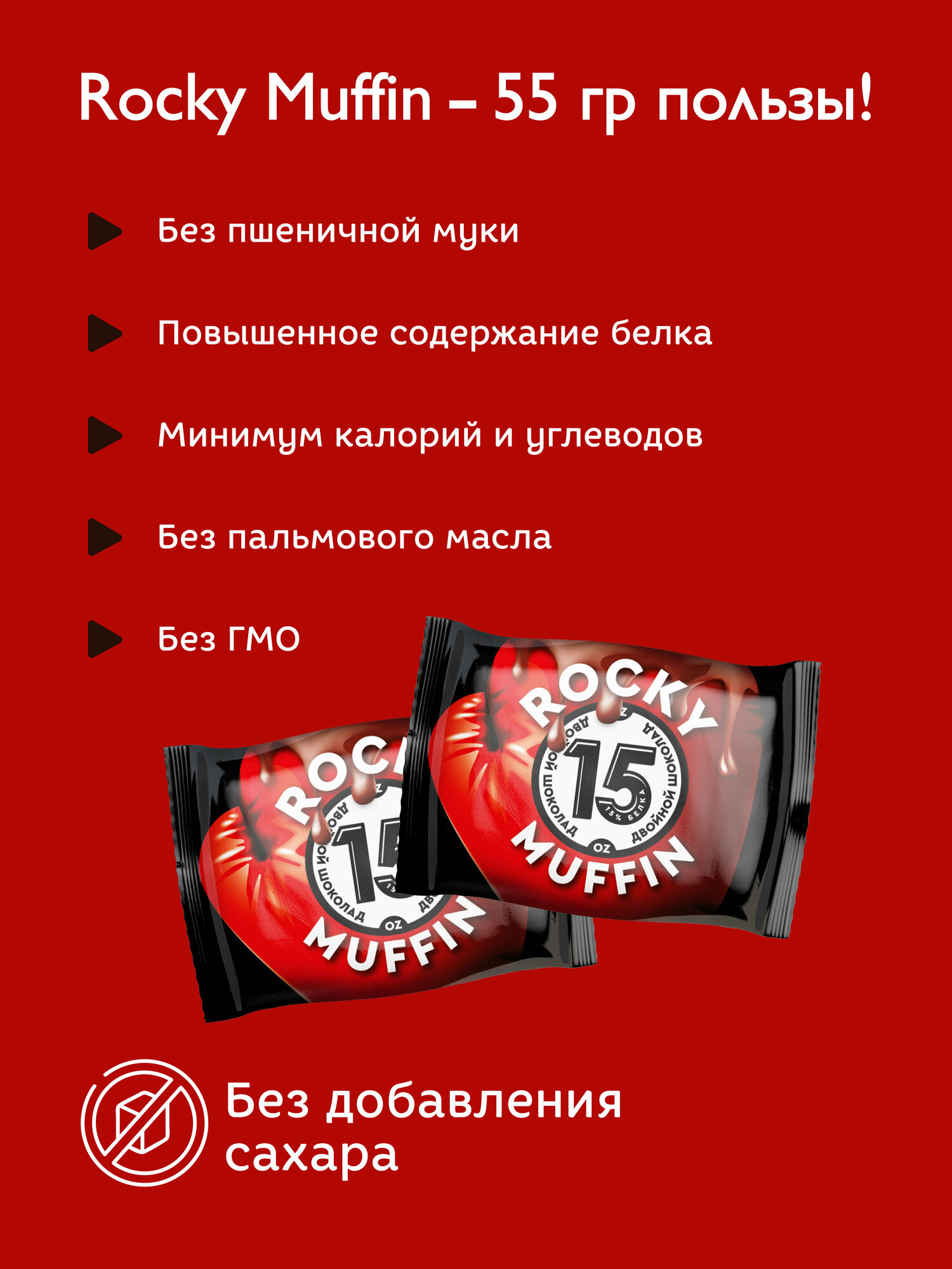 Маффин без сахара "Двойной шоколад" ROCKY MUFFIN 8 штук по 55гр интересное: