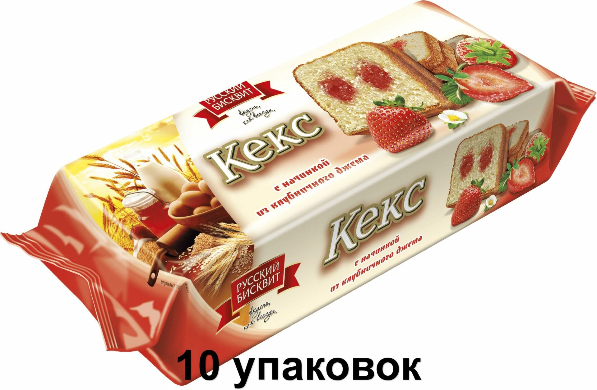 Русский бисквит Кекс Клубничный, 225 г, 10 уп интересное: