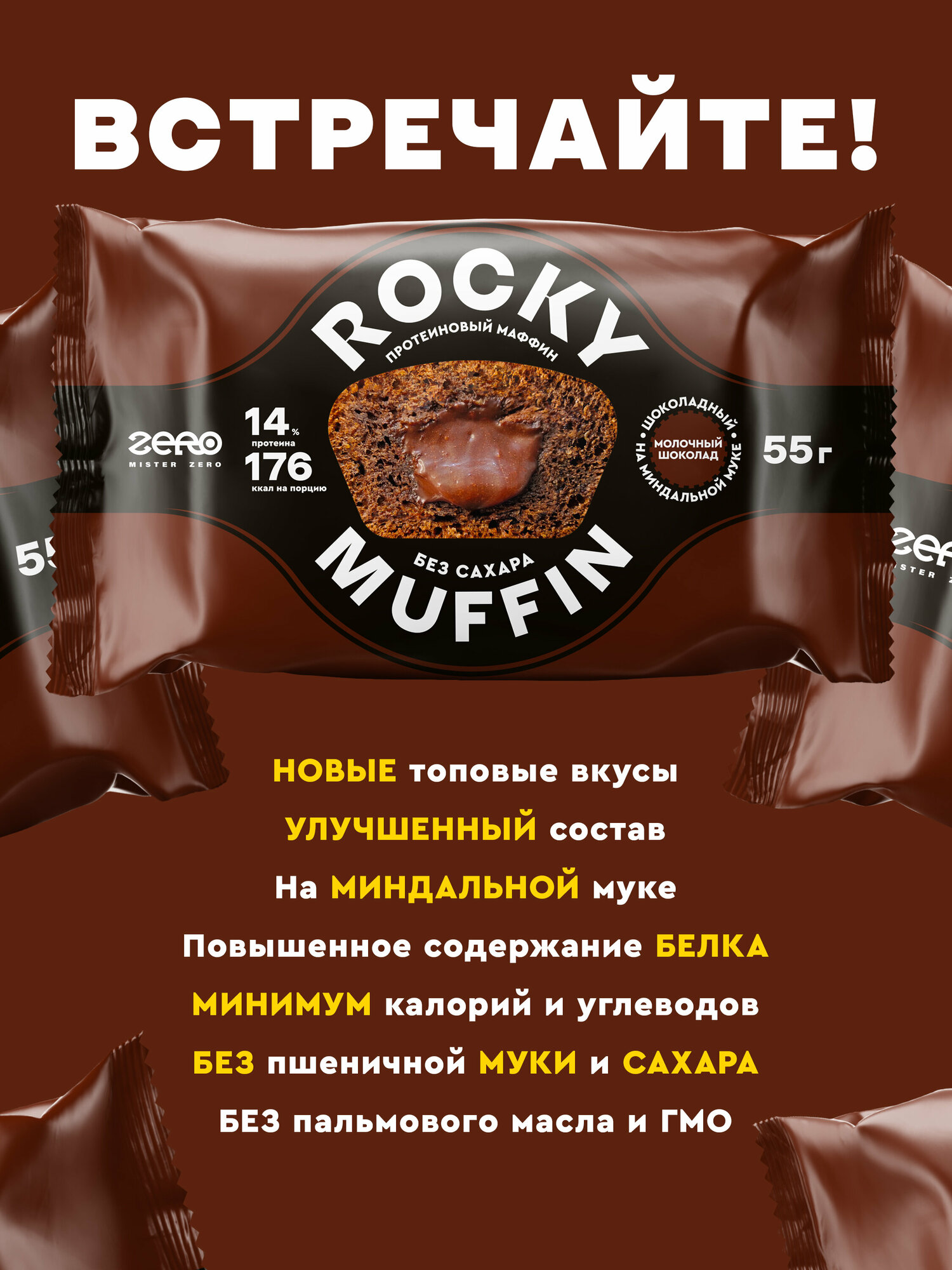 Маффины протеиновые без сахара ROCKY MUFFIN "Шоколадный с молочным шоколадом" 8шт по 55гр интересное: