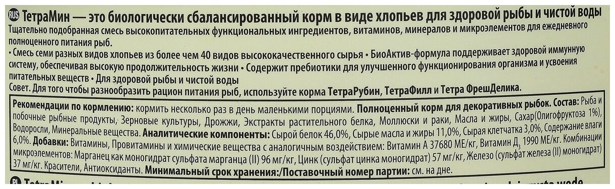TETRA Min Основной корм для аквариумных рыб хлопья 100мл.