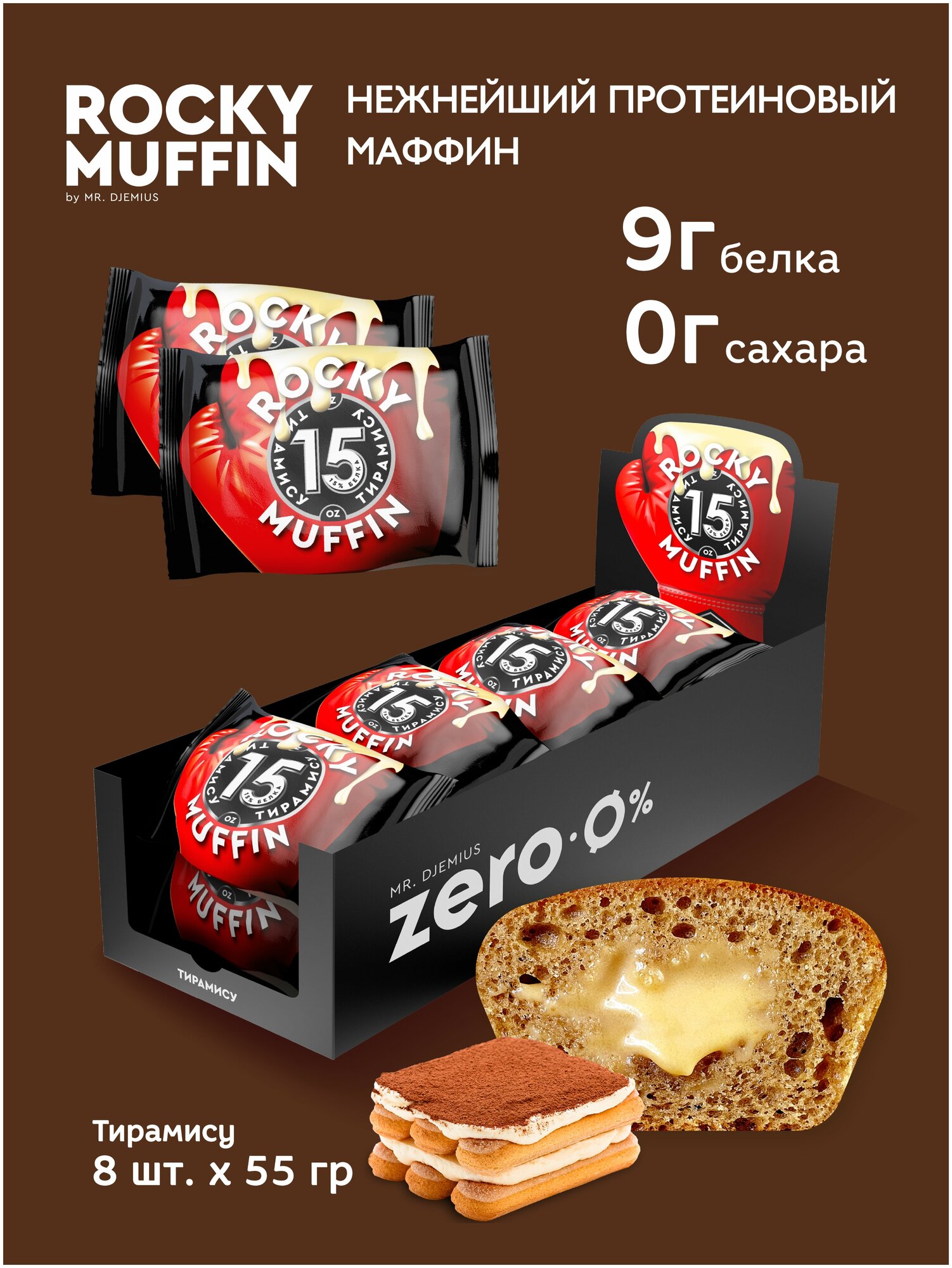Маффин без сахара "Тирамису" ROCKY MUFFIN" 8 штук по 55гр интересное: