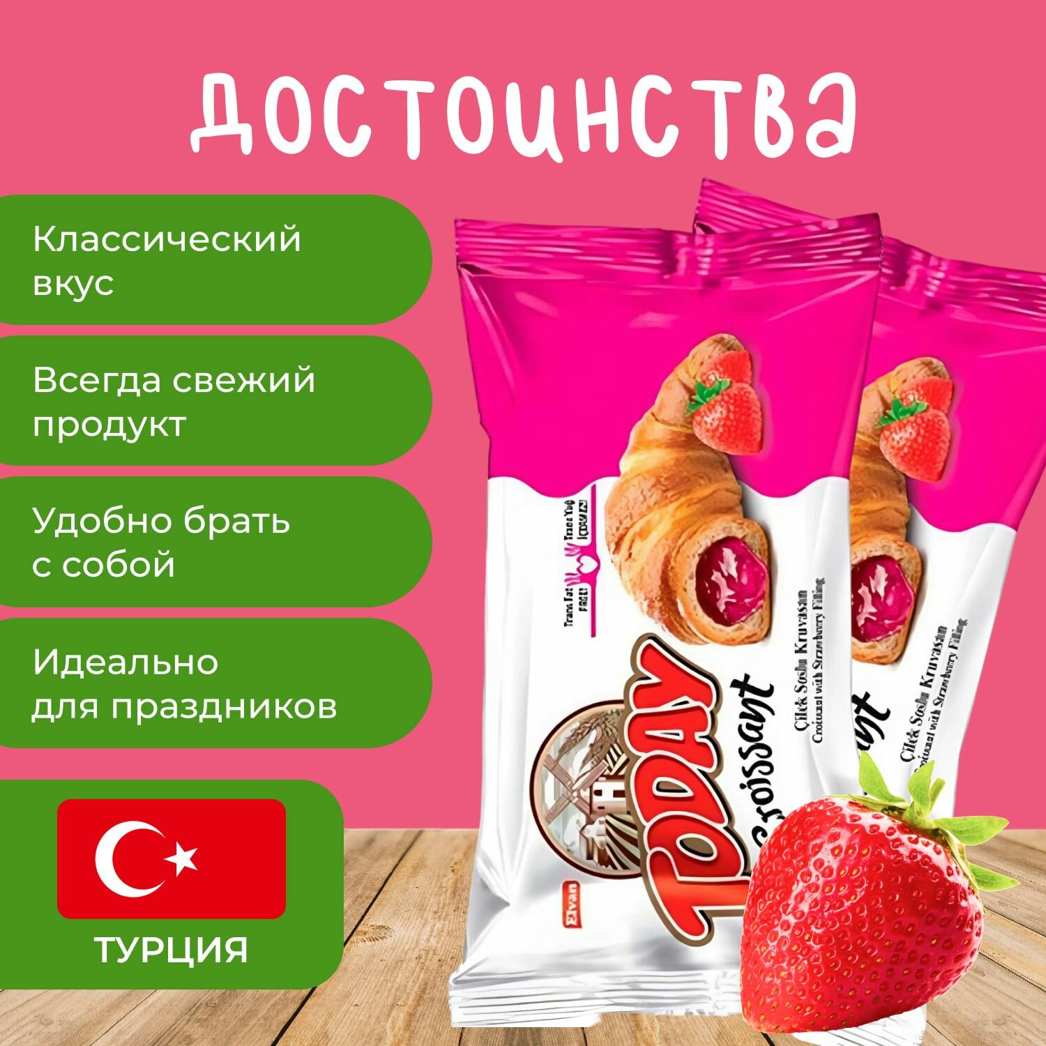 Today Круассан со вкусом Клубники 5 шт. х 40 гр. Круассан "Клубничный" в индивидуальной упаковке интересное:
