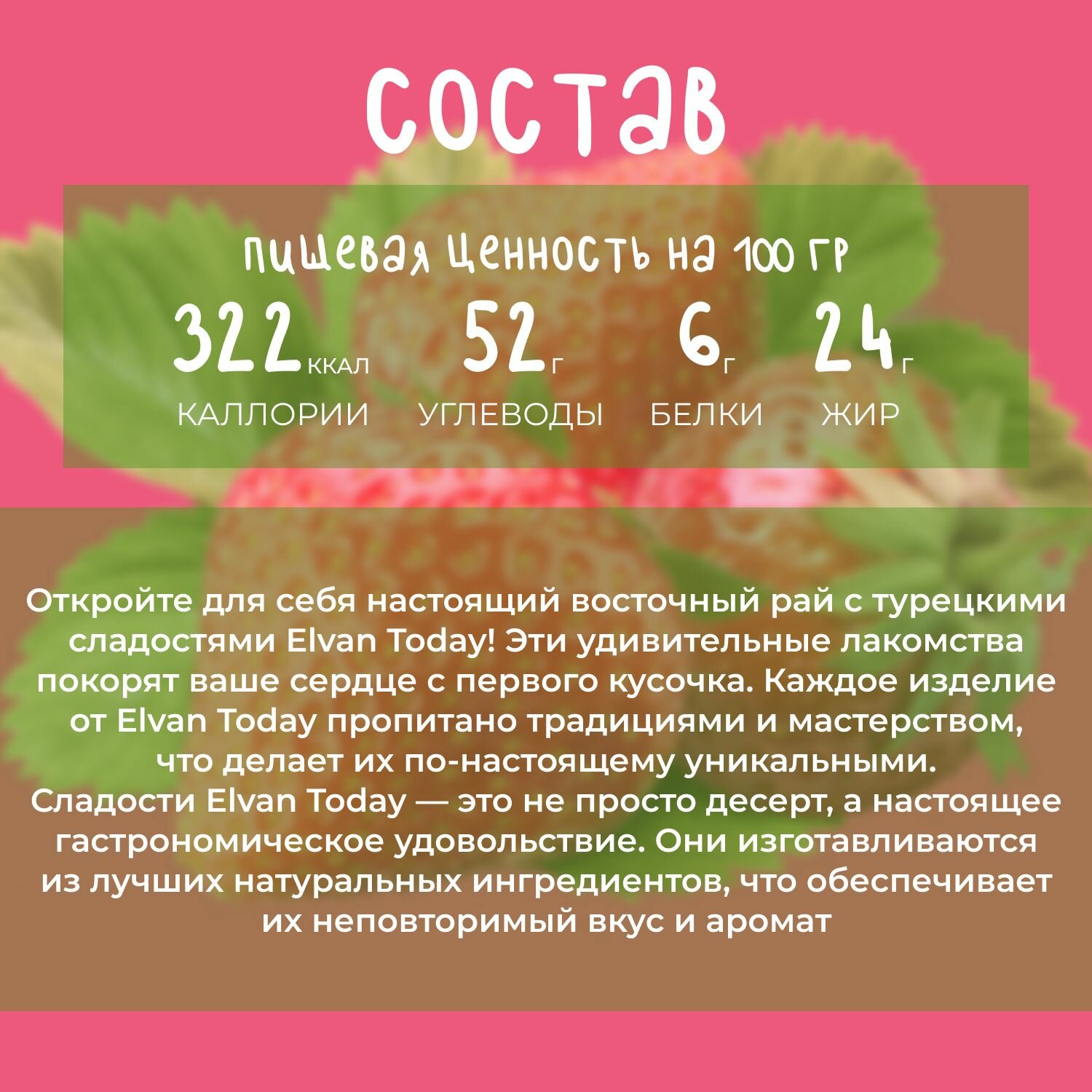 | Состав | Состав: кекс (74%): сахар, растительное масло, пшеничная мука, яйцо, крахмал, сироп глюкозы, эмульгатор (моно- и диглицериды жирных кислот, соевый лецитин), увлажнитель ( глицерин), сухое обезжиренное молоко, соль, разрыхлитель (бикарбонат натрия), ароматизатор (ванилин), консервант (сорбат калия). Глазированное покрытие с клубничным ароматом (11%): растительное масло, сахар, порошок деминерализованной молочной сыворотки (молоко), сухое обезжиренное молоко, эмульгатор (соевый лецитин), ароматизатор (молоко, клубника). Продукт содержит глютен, молоко, может содержать остаточные следы яиц и орехов. Пищевая ценность на 100 г продукта: белков - 1.2 г, жиров - 6 г, углеводов - 88 г Энергетическая ценность 100 г: 411 ккал |
