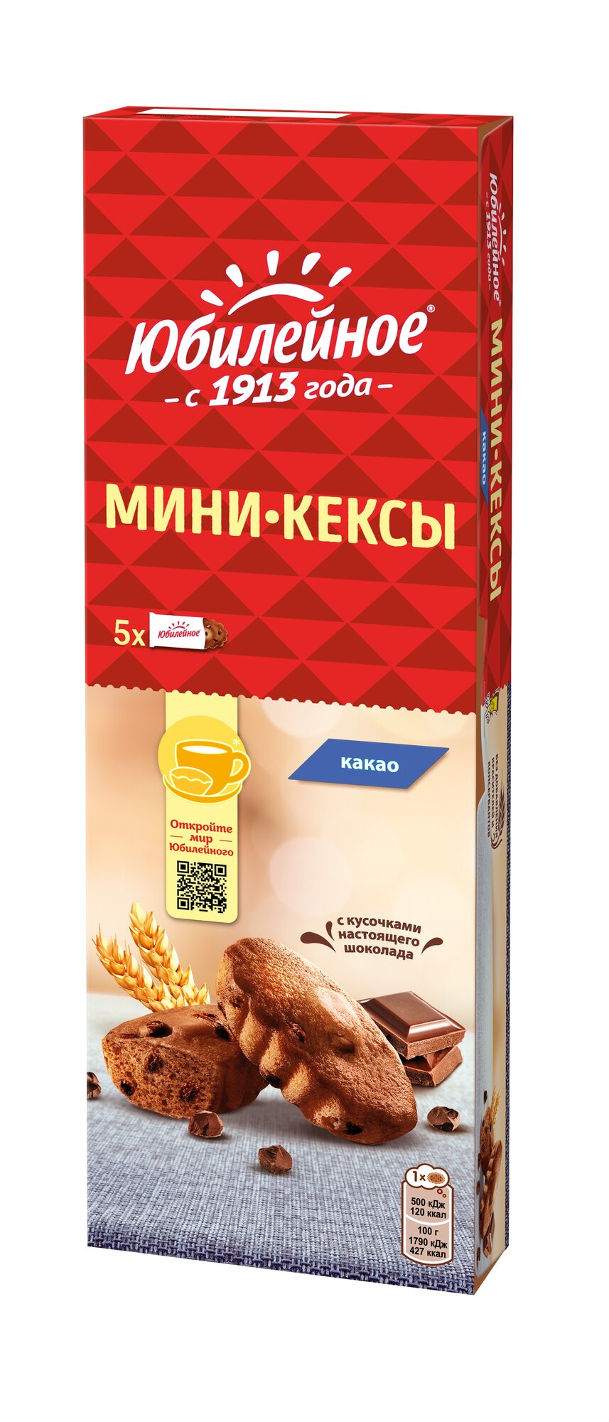 Купить Кекс Юбилейное мини-кексы с кусочками темного шоколада и какао, 140г
