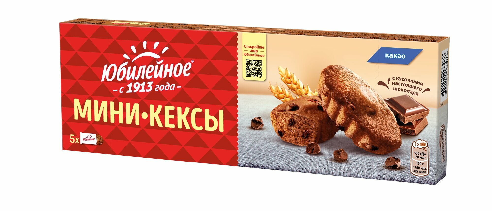 Кекс Юбилейное мини-кексы с кусочками темного шоколада и какао, 140г интересное: