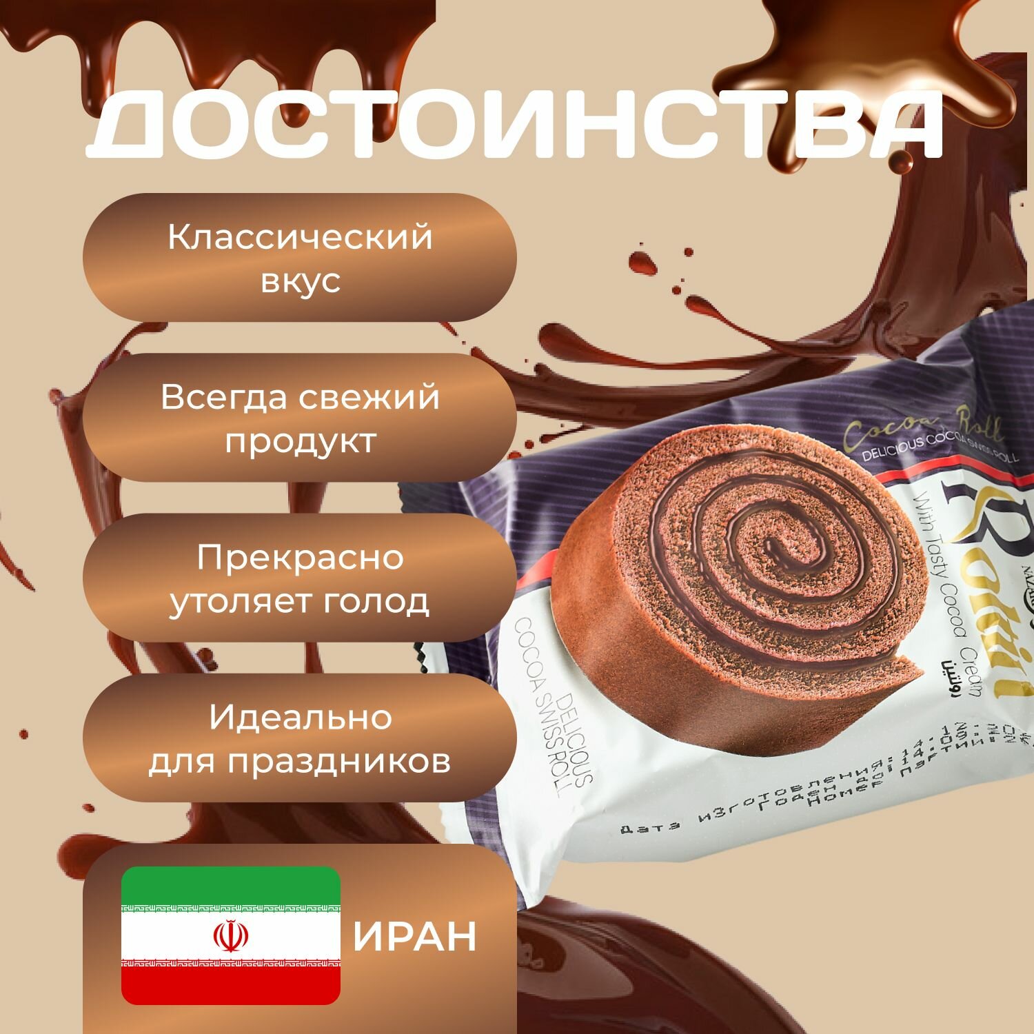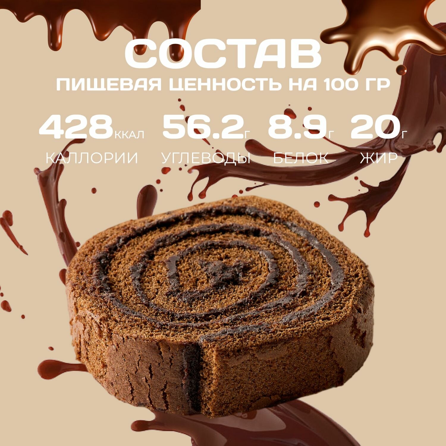 Рулет бесквитный с кремом какао 8 шт. х 65 гр. интересное: