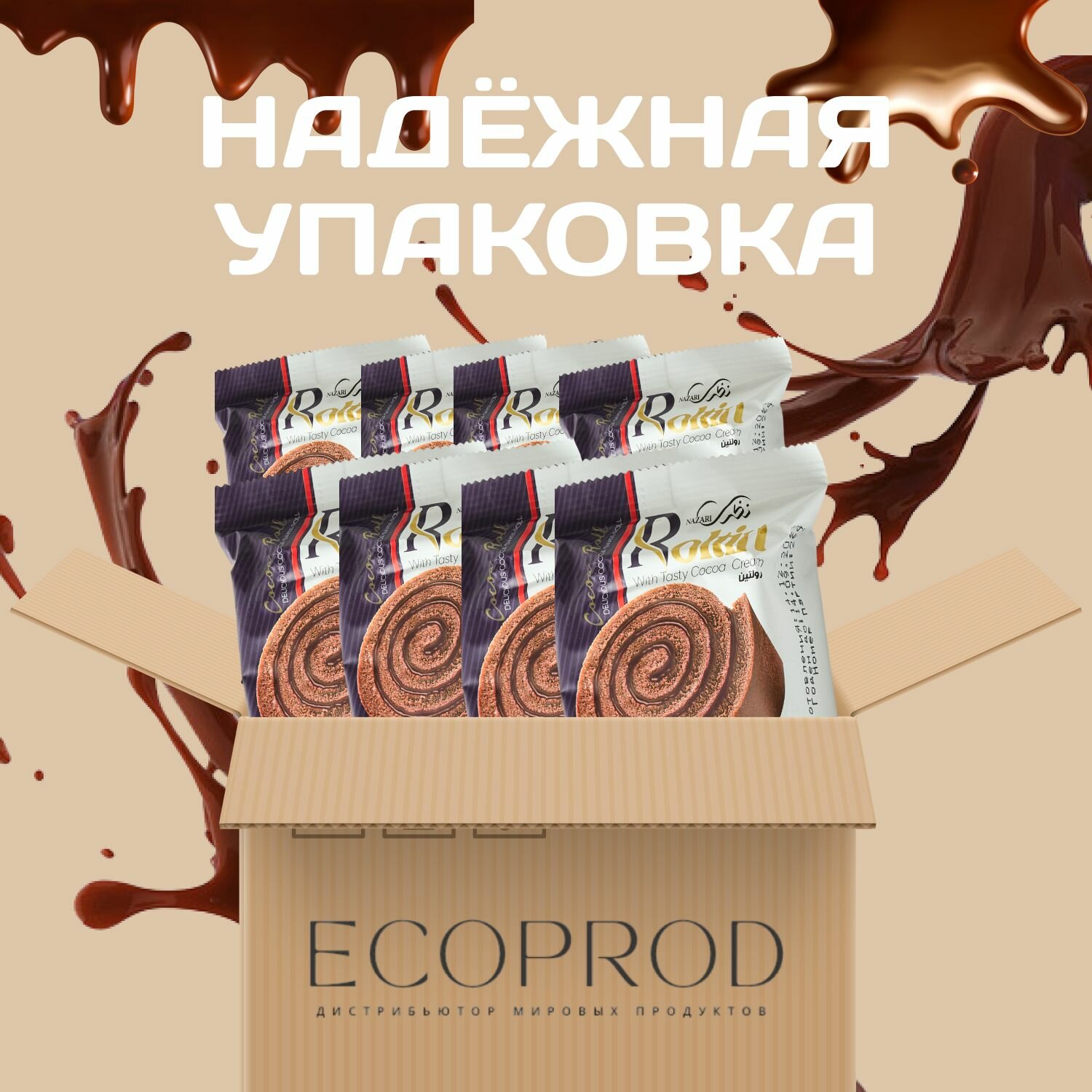 Купить Рулет бесквитный с кремом какао 8 шт. х 65 гр.