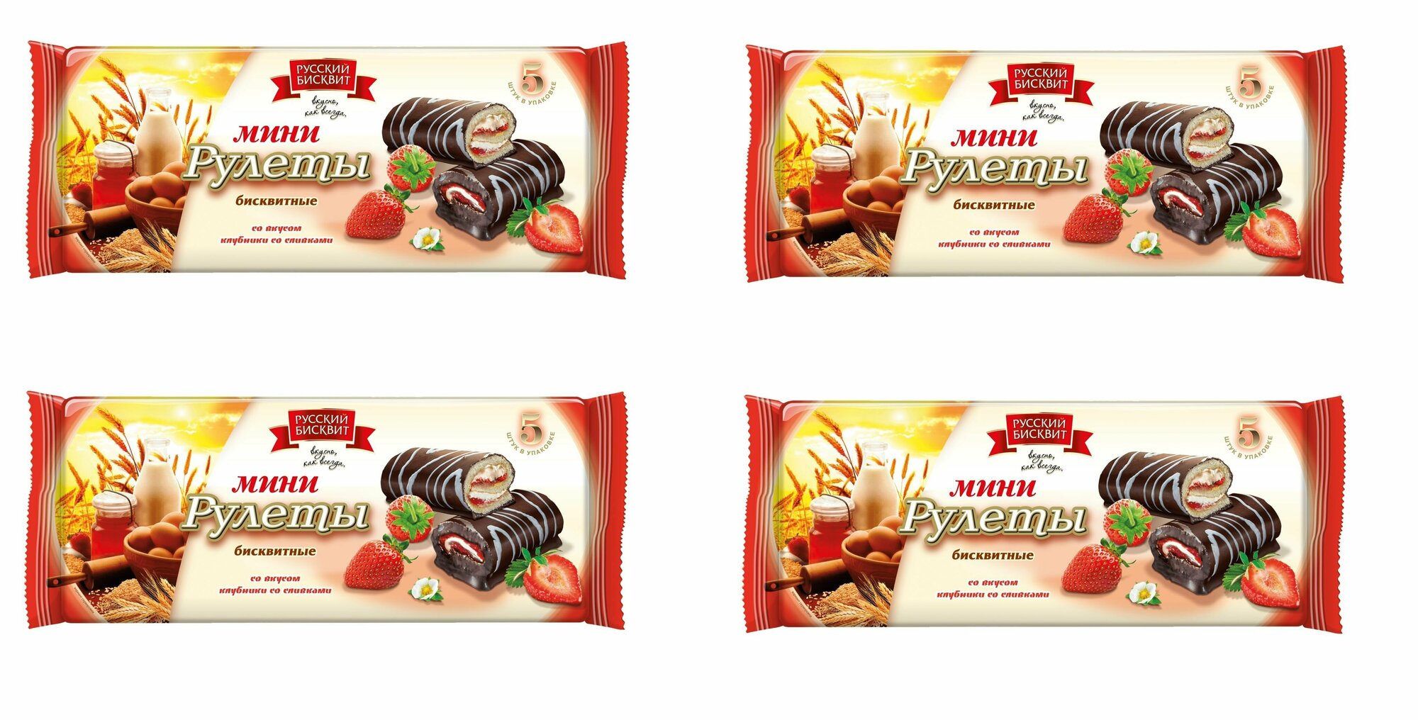 Мини-рулеты бисквитные клубника со сливками "Русский бисквит" 175 г 4 шт интересное: