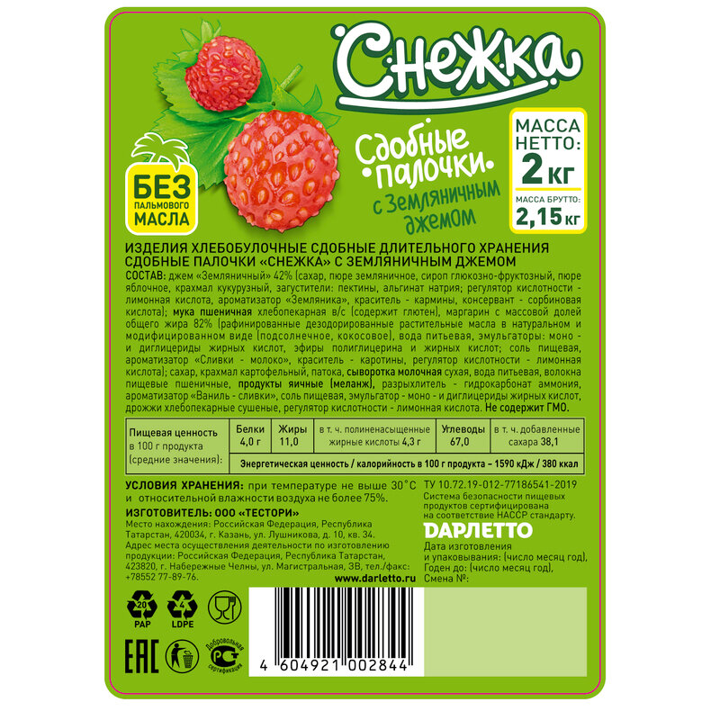Печенье Снежка Сдобные палочки с земляничным джемом, 2 кг интересное: