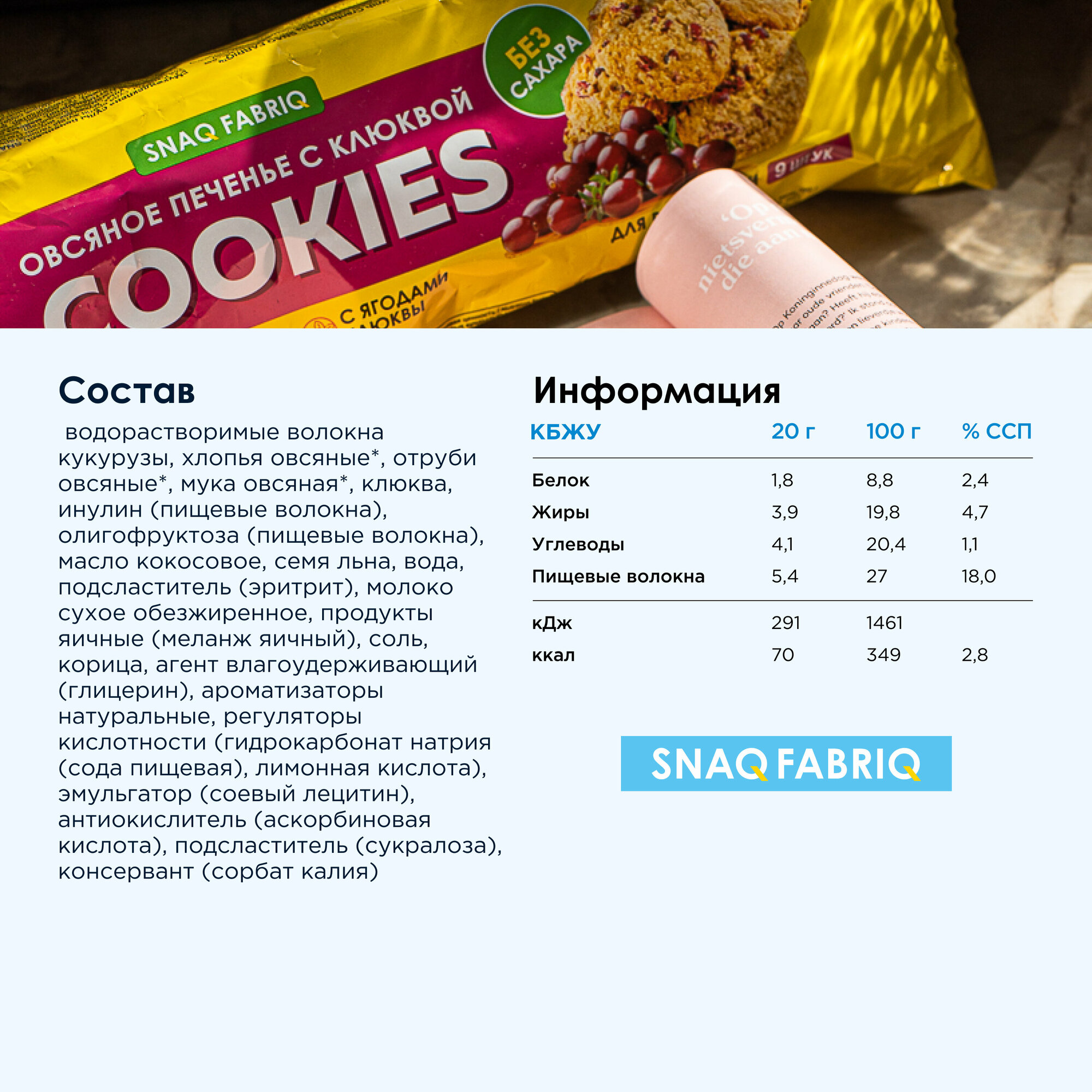 Печенье овсяное SNAQ FABRIQ с клюквой, без сахара, 180г интересное: