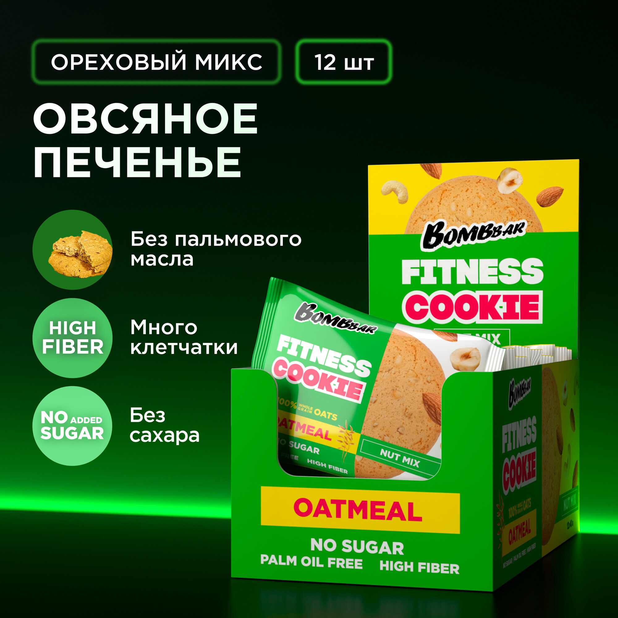 Купить Bombbar Fitness Печенье овсяное без сахара Ореховый Микс, 12шт х 40г