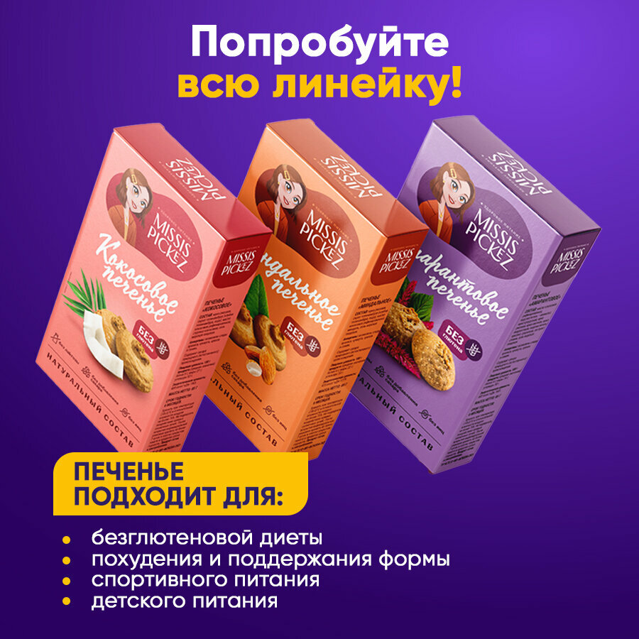 Набор печенья без сахара "Missis Pickez" Амарантовое, кокосовое, миндальное Без лактозы Без глютена Набор - 3 пачки