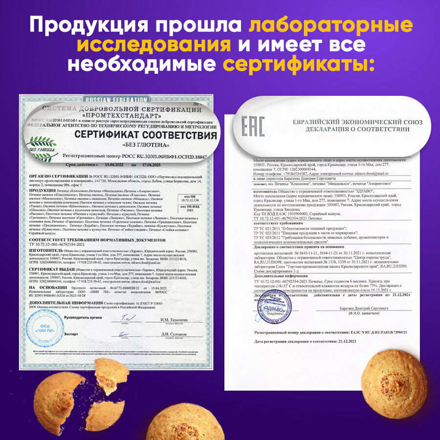Печенье амарантовое без сахара без глютена "Missis Pickez" 3 пачки по 100 г