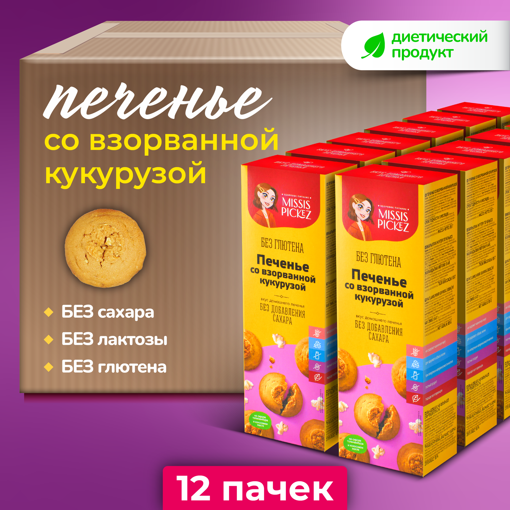 Missis Pickez Печенье со Взорванной кукурузой без добавления сахара и глютена, без лактозы Натуральное для детского питания Набор - 12 пачек