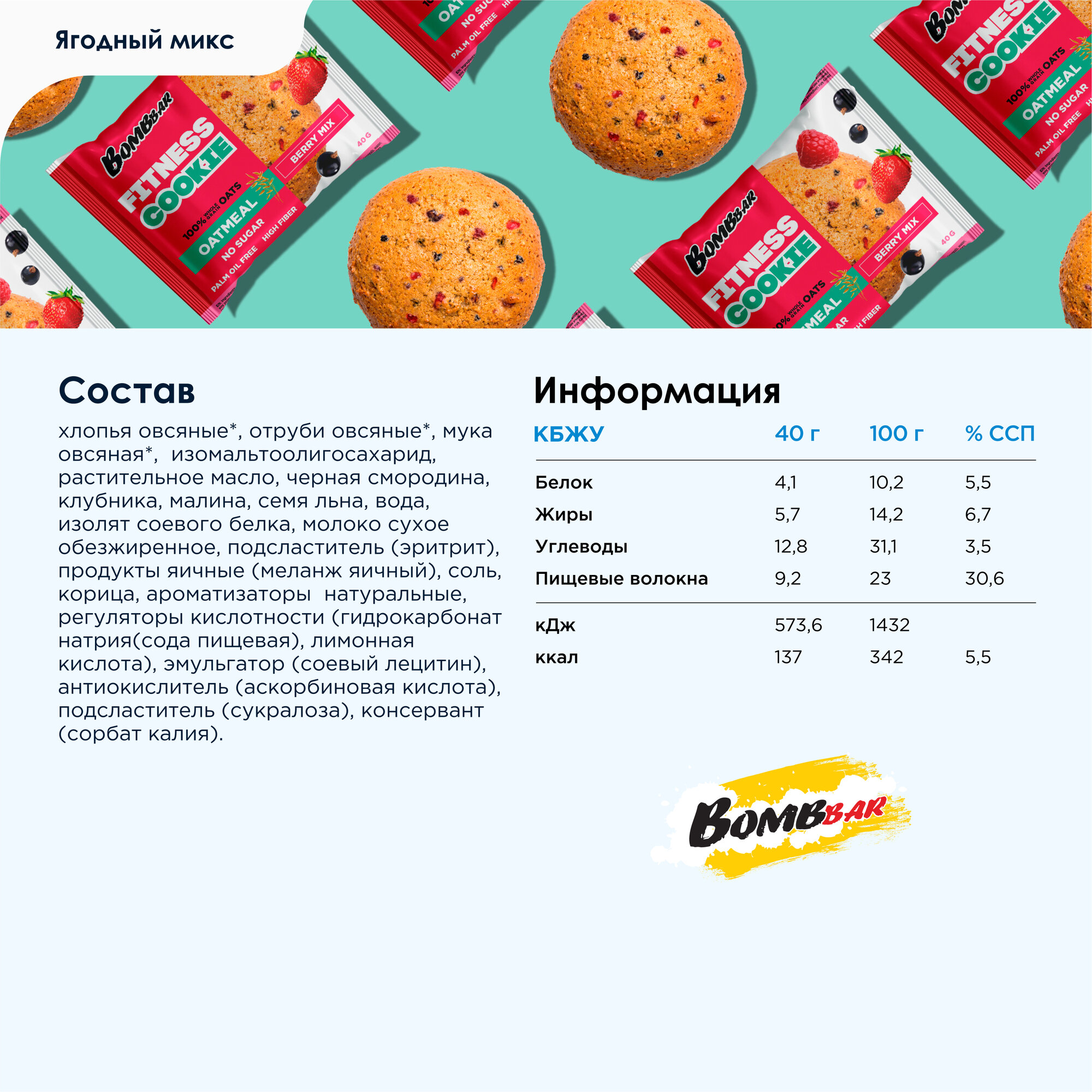 Bombbar Овсяное печенье без сахара, Ассорти, 12шт х 40г интересное: