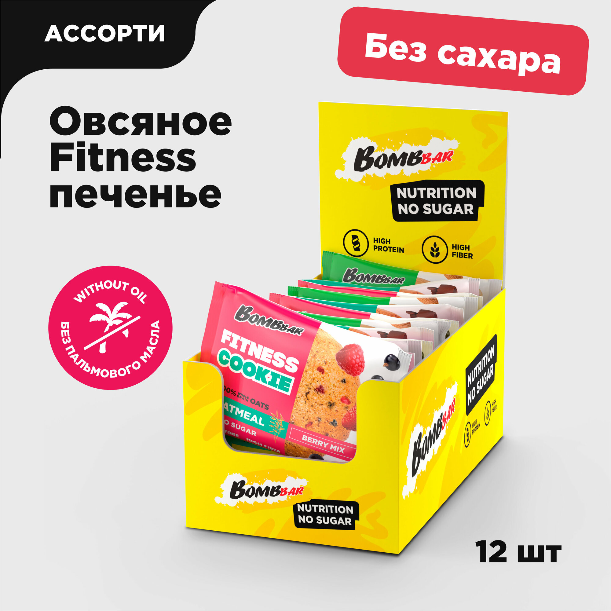 Купить Bombbar Овсяное печенье без сахара, Ассорти, 12шт х 40г