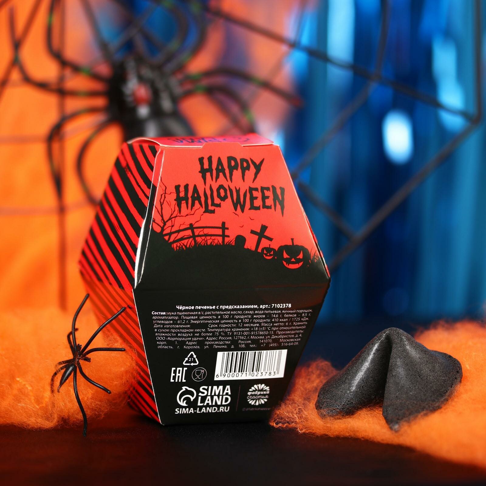Печенье с предсказанием на хэллоуин «Happy Halloween», черное, 1 шт, 6 г