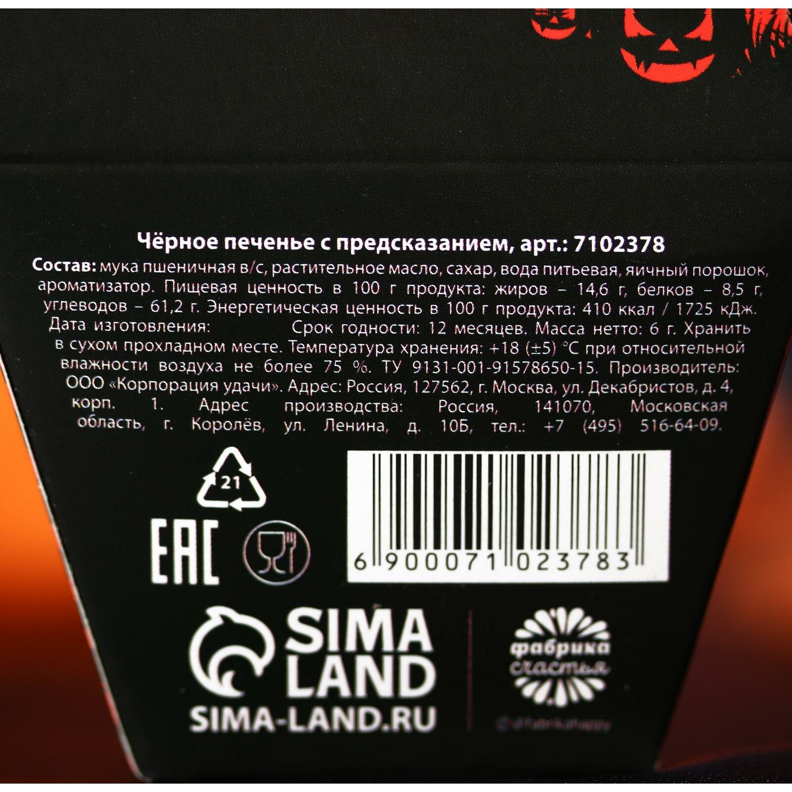 Печенье с предсказанием на хэллоуин «Печеньки или жизнь», черное, 1 шт, 6 г