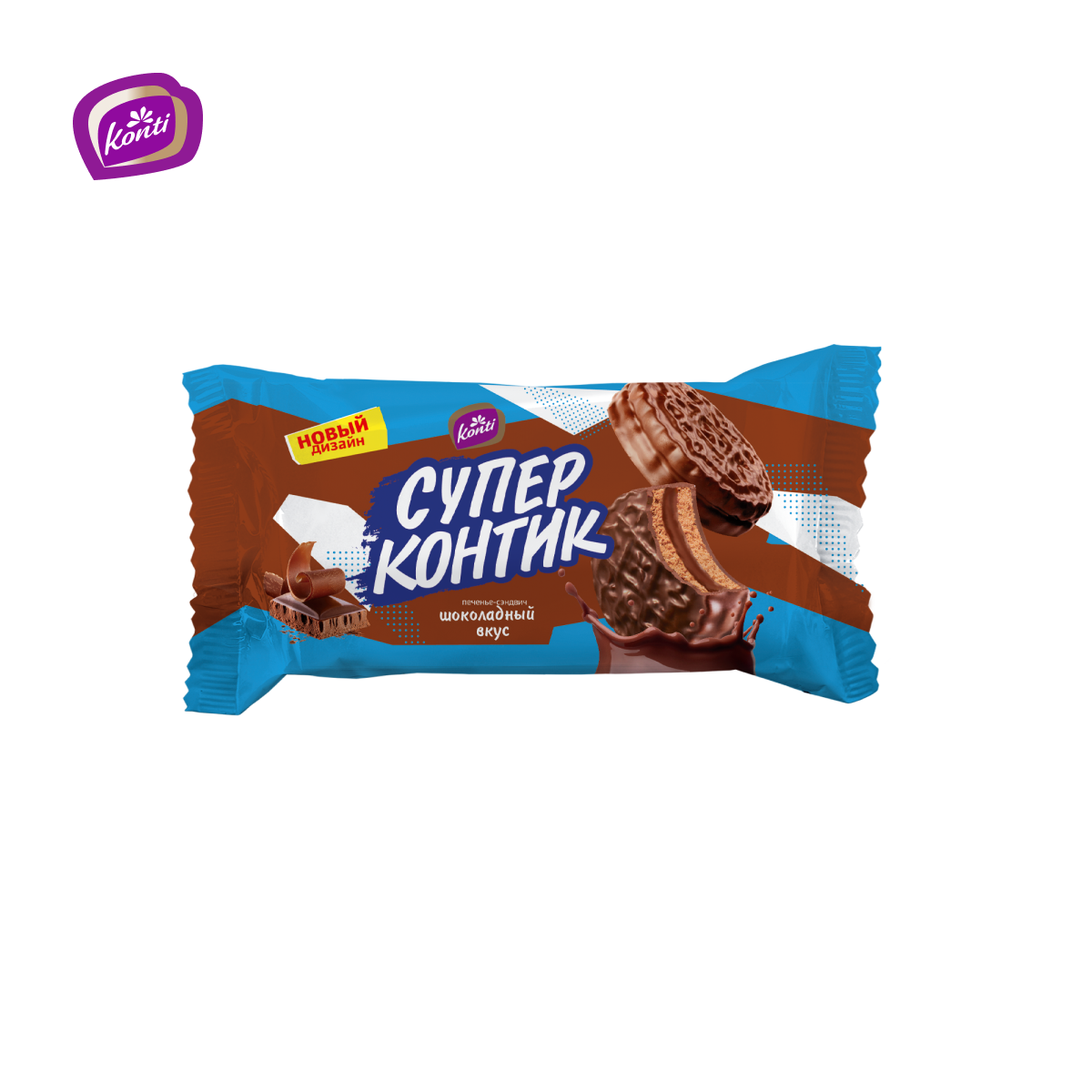 Печенье-сэндвич "Супер Контик" с шоколадным вкусом, комплект 15 шт по 100 г интересное: