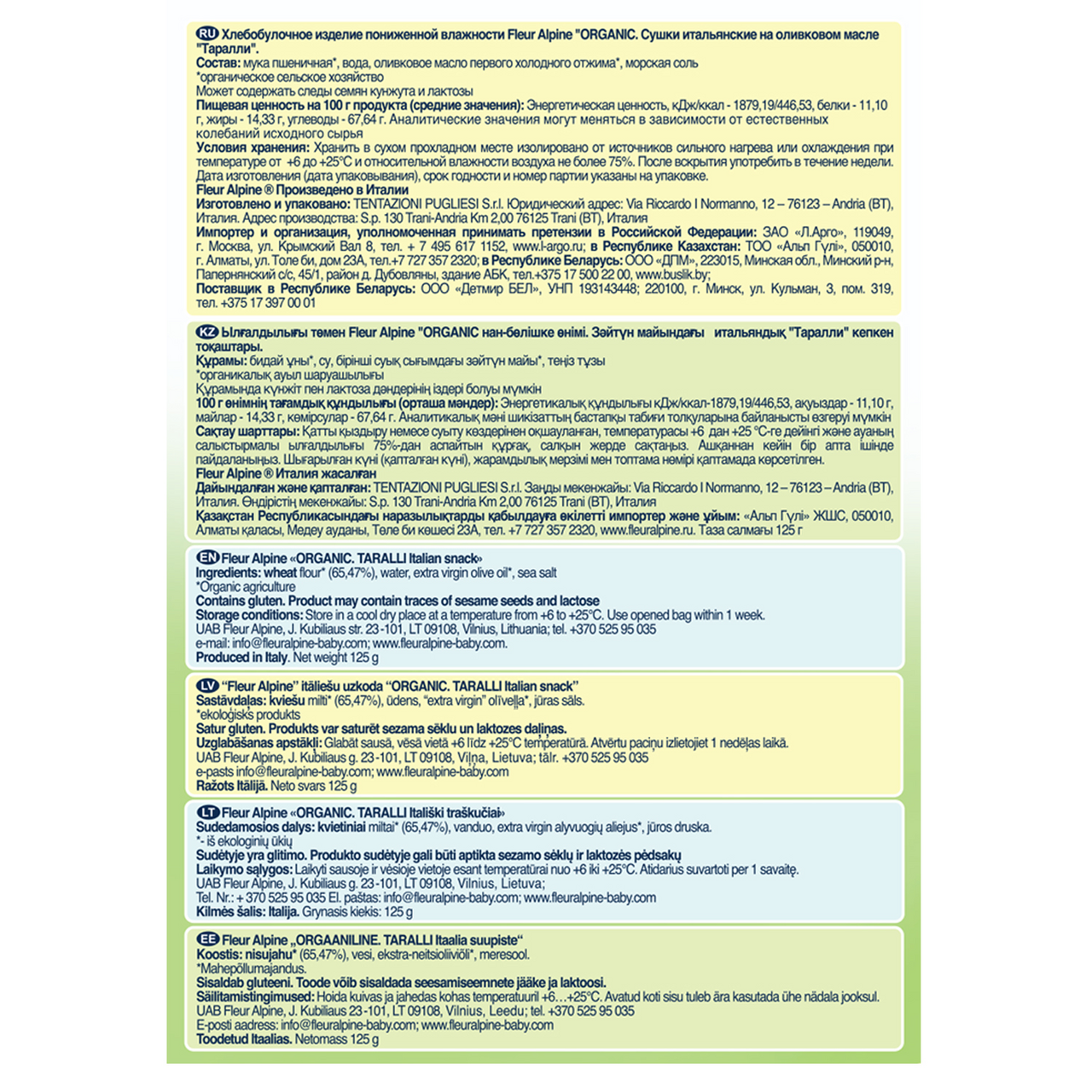 | Состав | мука пшеничная*, вода, оливковое масло первого холодного отжима*, морская соль *органическое сельское хозяйство |