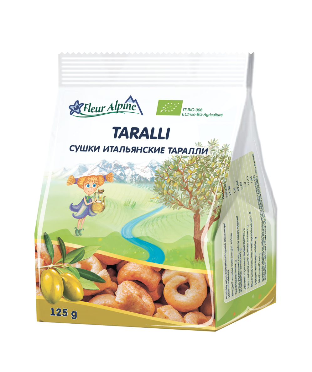 Сушки итальянские таралли Fleur Alpine на оливковом масле первого холодного отжима для всей семьи, 125 г