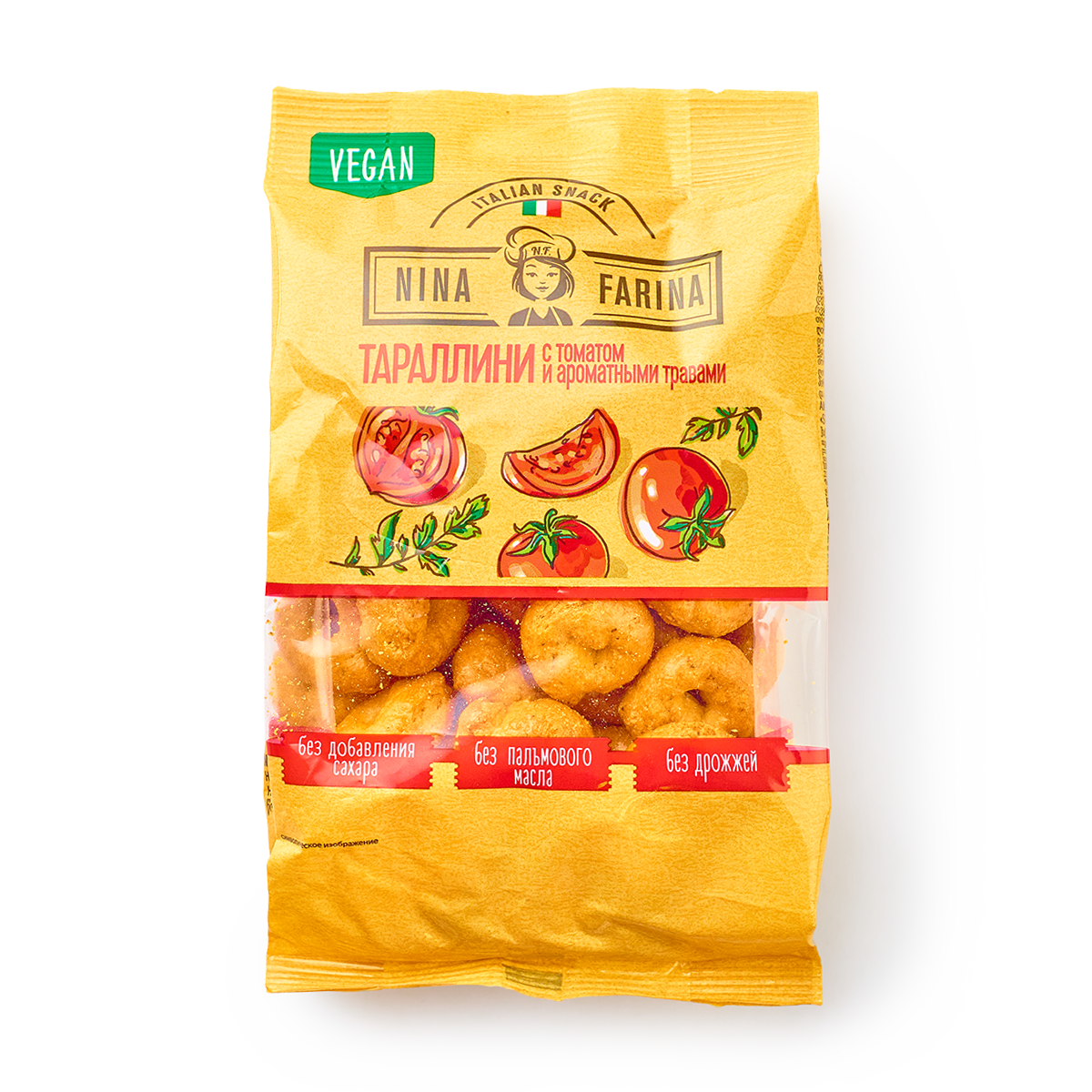Мини-сушки (тараллини) NINA FARINA с томатом и ароматными травами, пакет, 180 г, ВТ003
