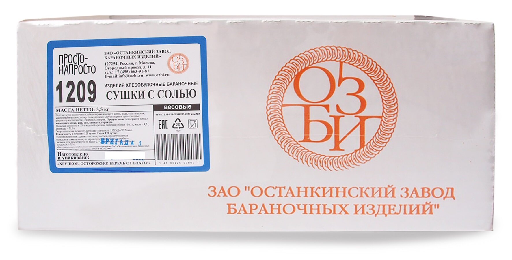 Сушки с солью "Просто - Напросто" Семейка озби, 3,5 кг интересное: