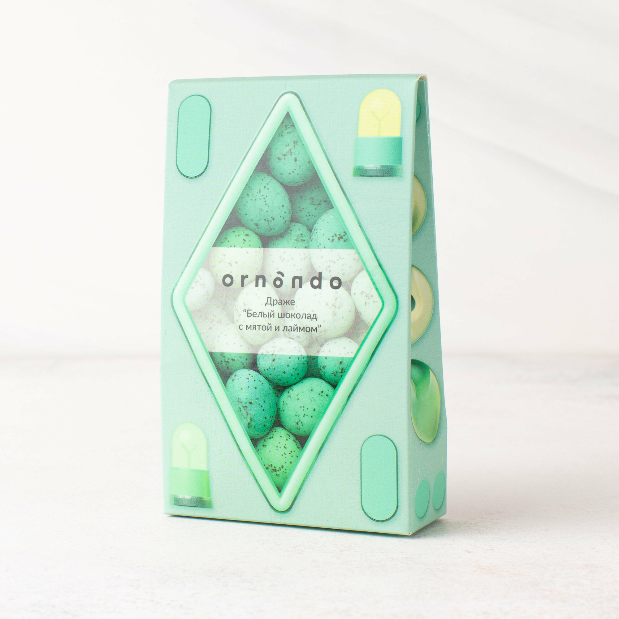 Драже Ornando "Белый шоколад с мятой лаймом" интересное: