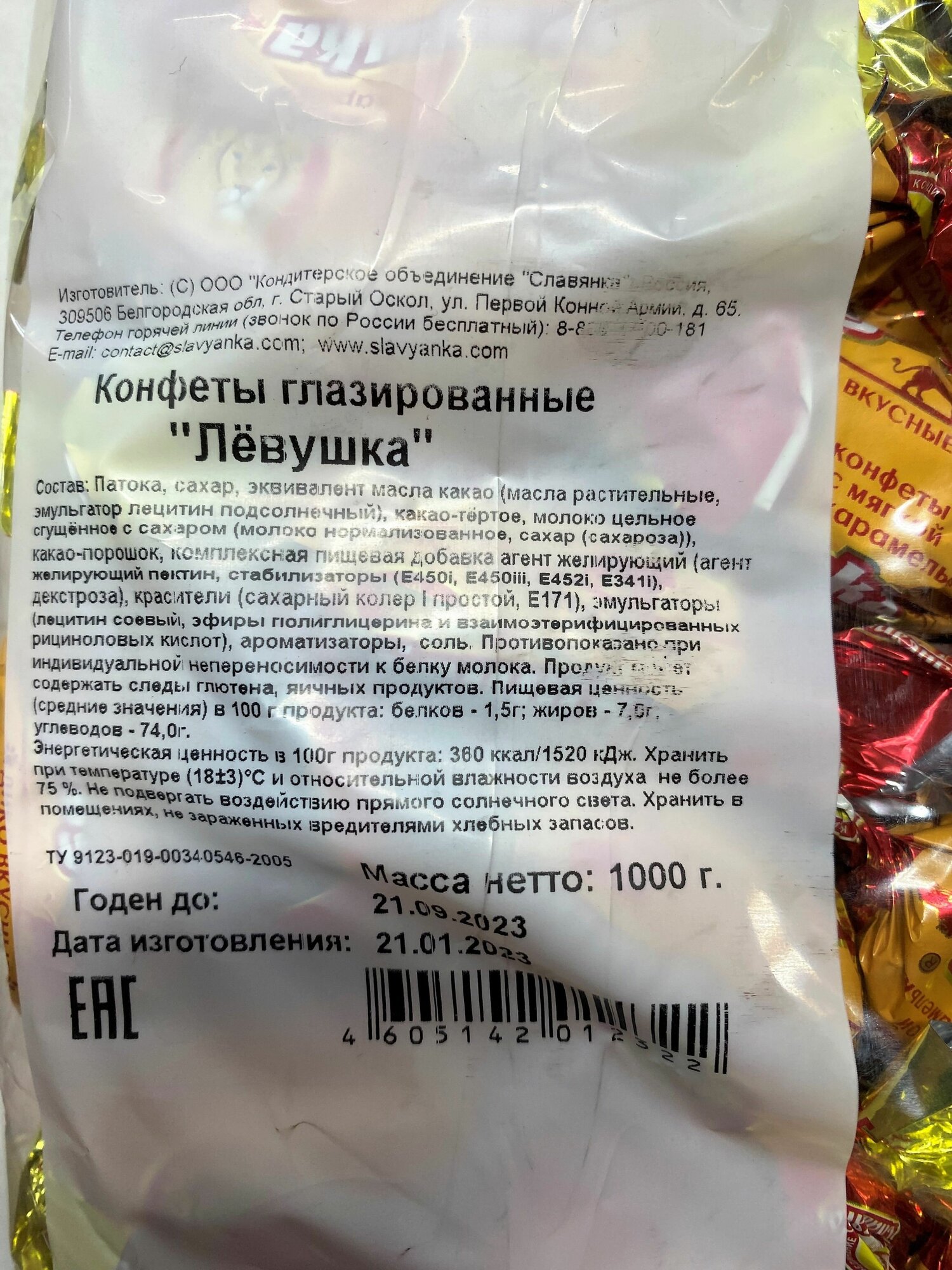 Конфеты глазированные Лёвушка Славянка 1 кг