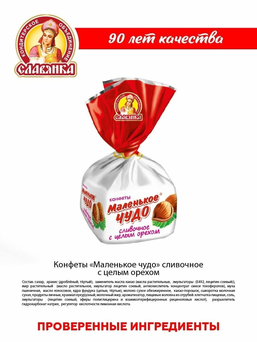 Конфеты Славянка Маленькое чудо, сливочное с целым орехом, пакет, 1 кг