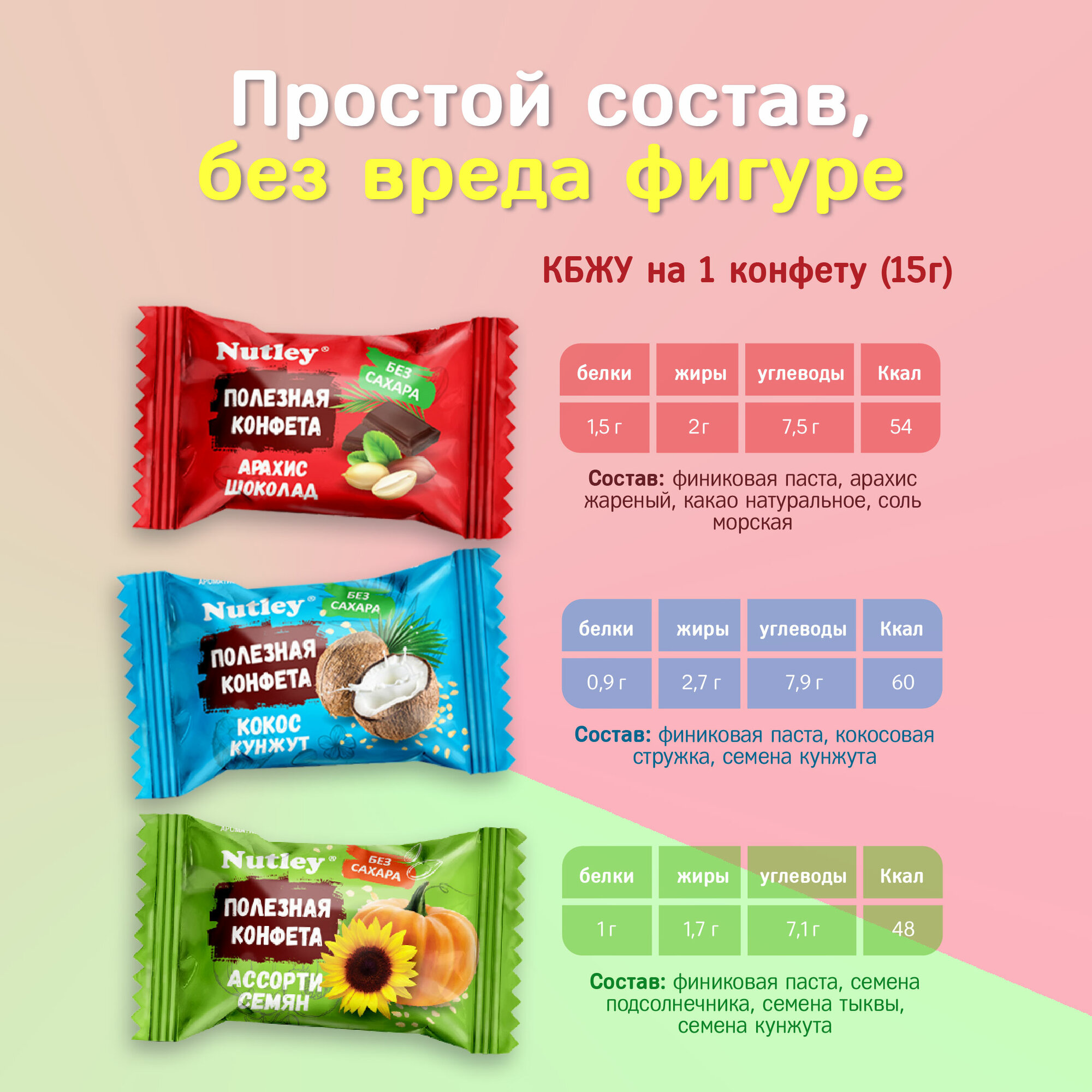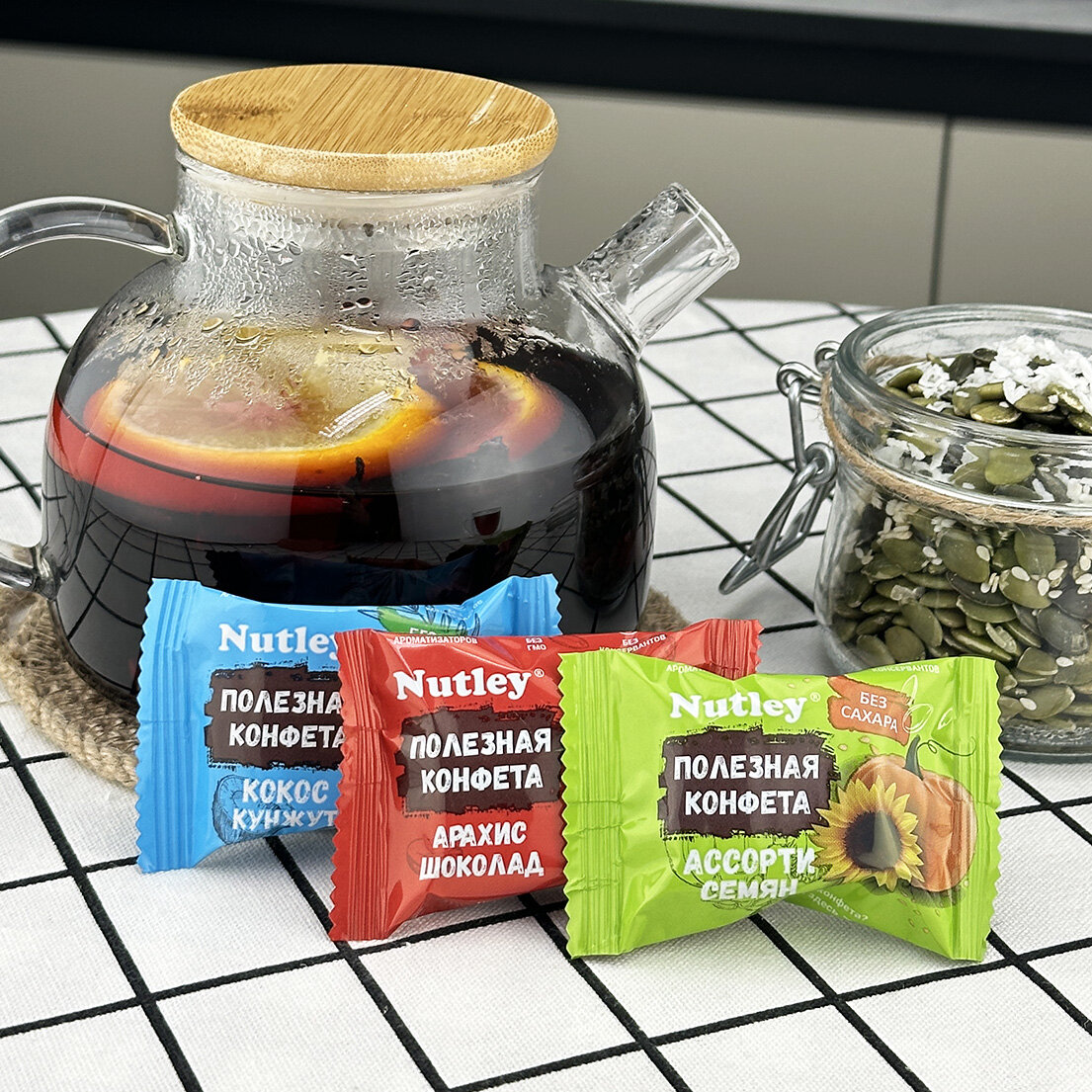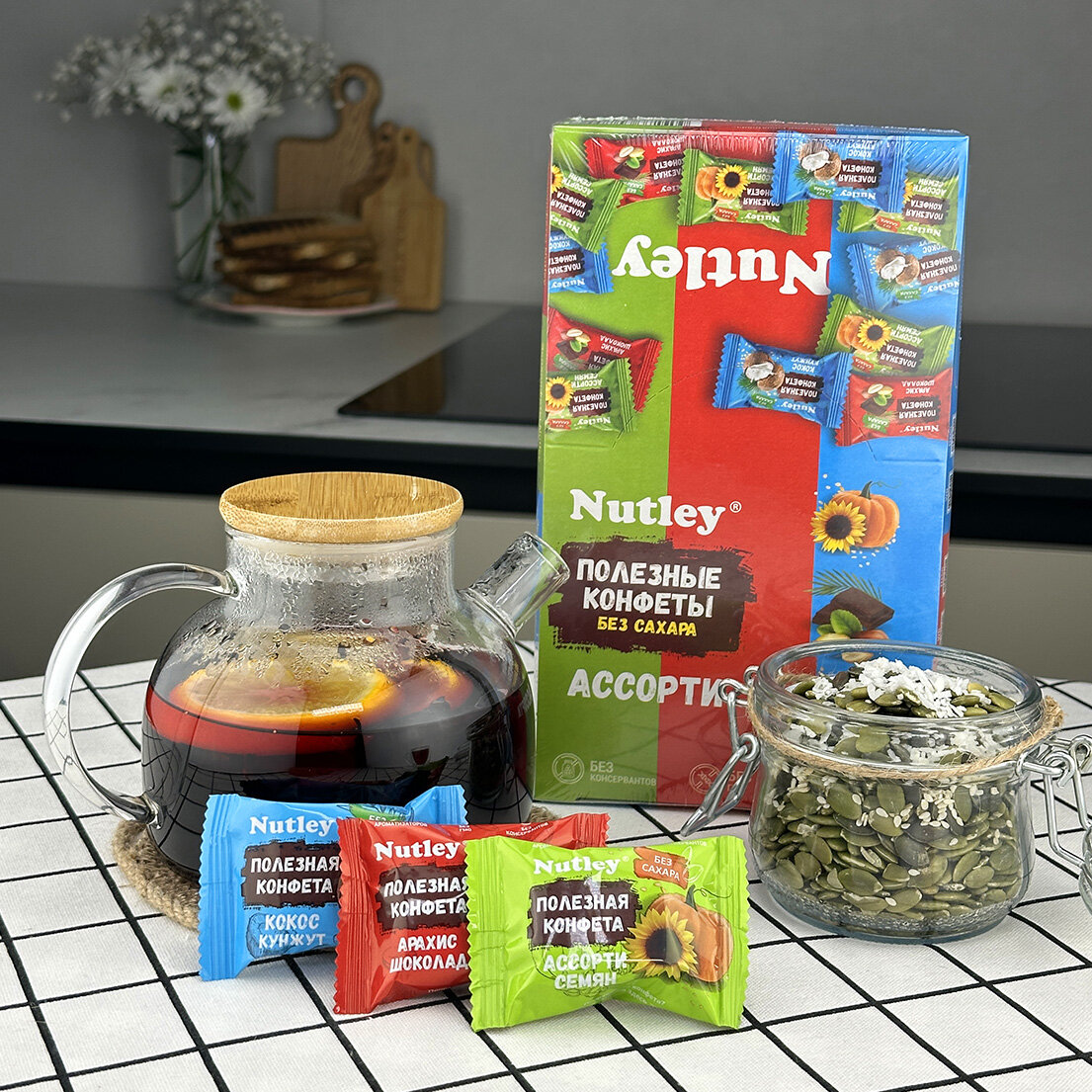 Конфеты без сахара, подарочные Nutley ассорти-семян, конфеты в коробках набор, батончик, для диабетиков, веганов / полезные сладости без глютена, без лактозы, (500г)