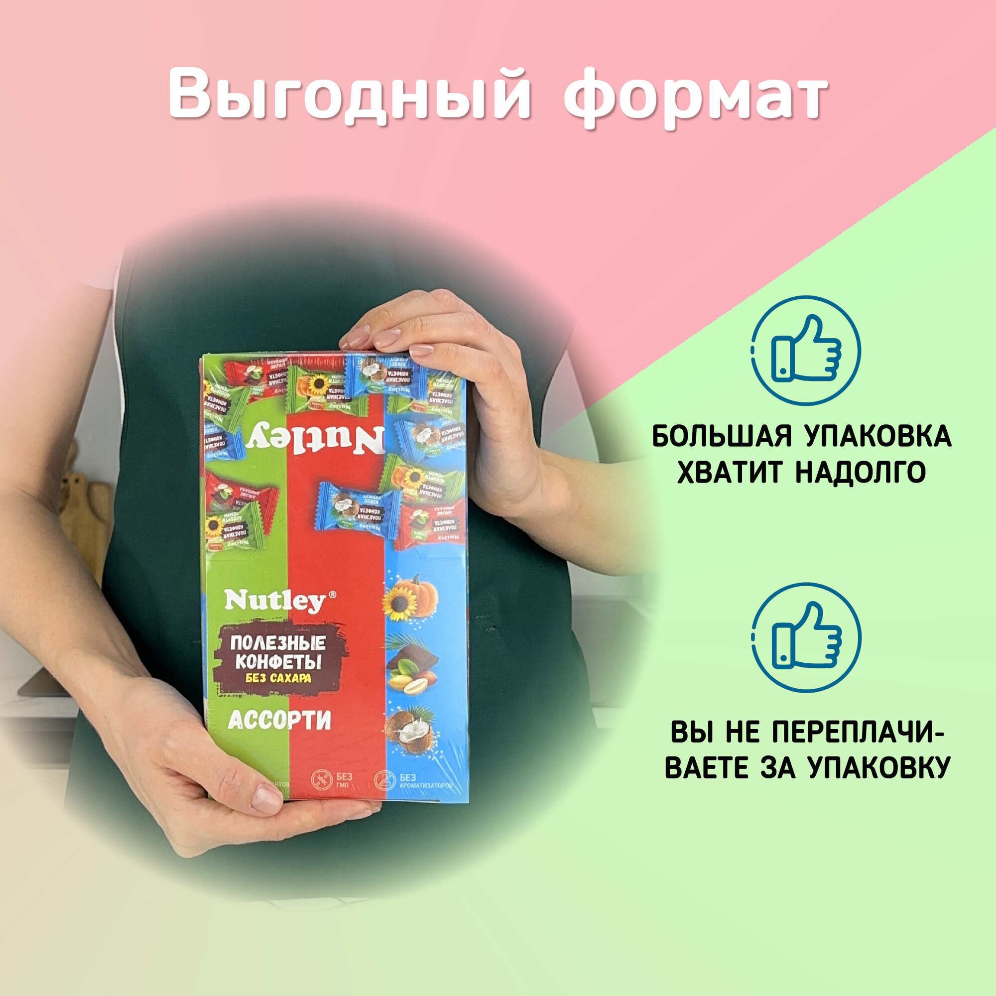 Купить Конфеты без сахара, подарочные Nutley ассорти, конфеты в коробках набор, батончик, для диабетиков, веганов / полезные сладости без глютена, без лактозы, (500г)