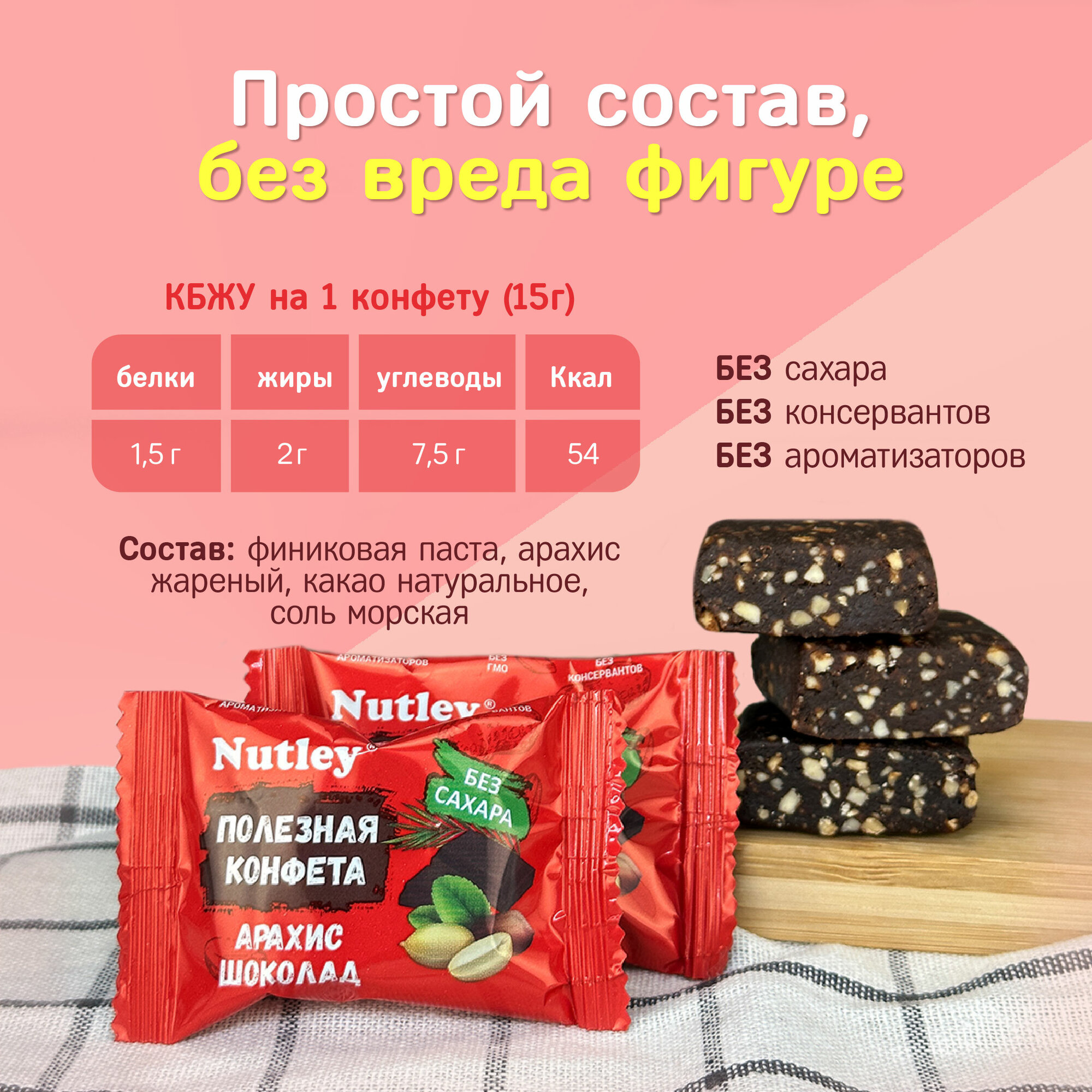 Купить Конфеты шоколадные без сахара, подарочные Nutley арахис-шоколад, конфеты в коробках набор, батончик, для диабетиков, веганов / полезные сладости без глютена, без лактозы, (500г)