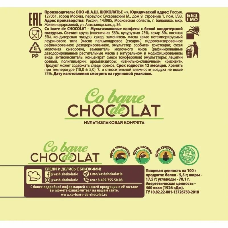 Конфеты В.А.Ш. Шоколатье Co barre de Chocolat (Кобардье) мультизлаковые с белой глазурью, 400 г