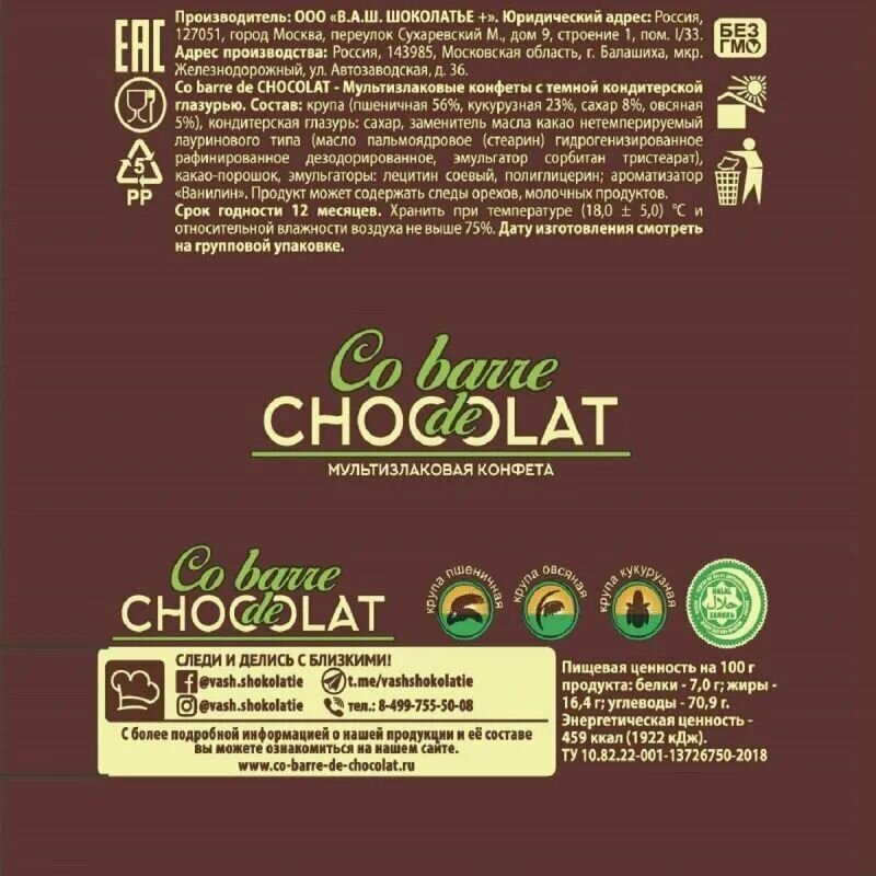 Купить Мультизлаковые конфеты с темной кондитерской глазурью CO BARRE DE CHOCOLAT 150 гр х 3 штуки